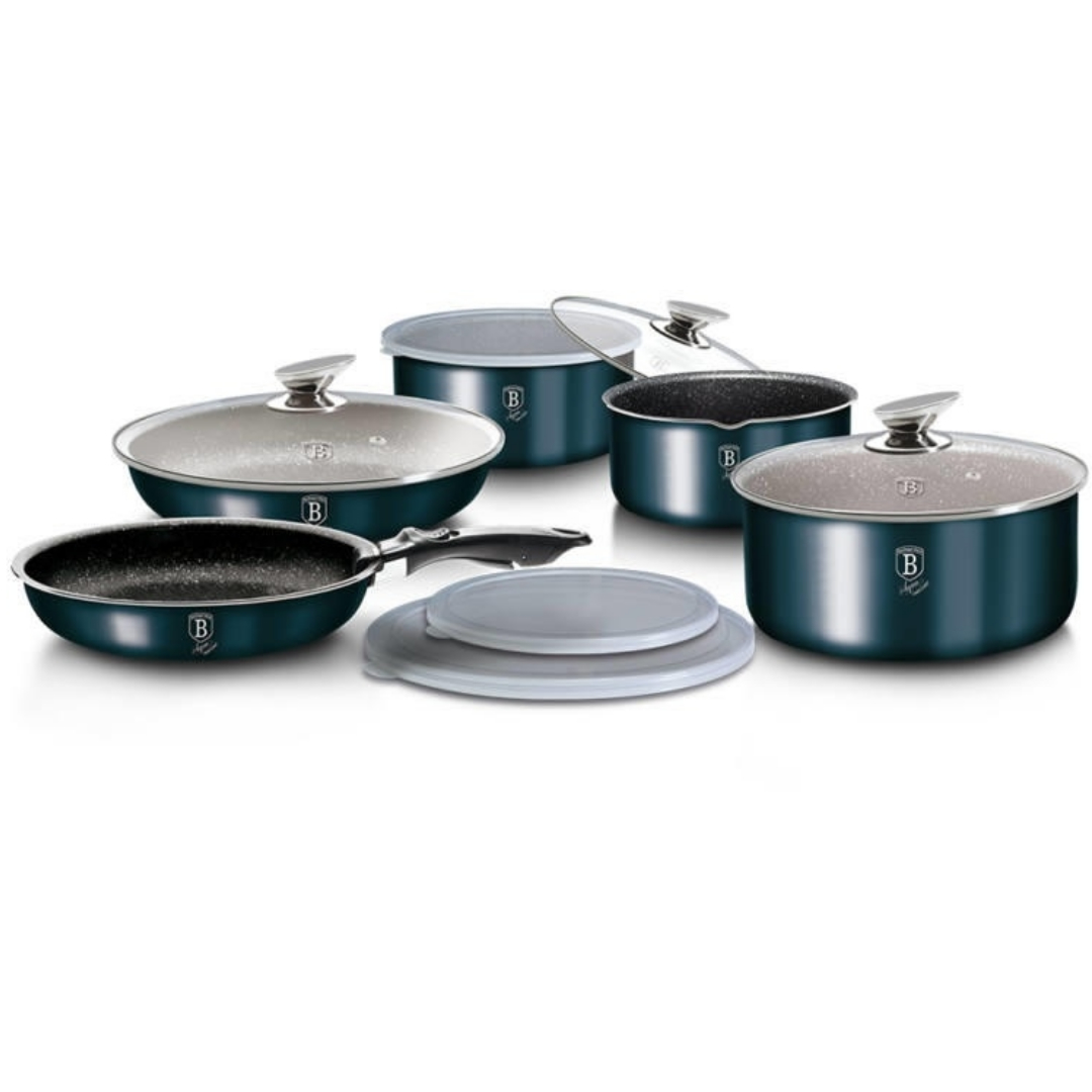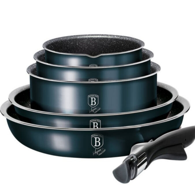 - Verwenden Sie beim Waschen keine Metallscheuermaschine oder Metallutensilien zum Kochen, um eine Beschädigung der Antihaftbeschichtung und der metallischen Farbe des Kochgeschirrs zu vermeiden.