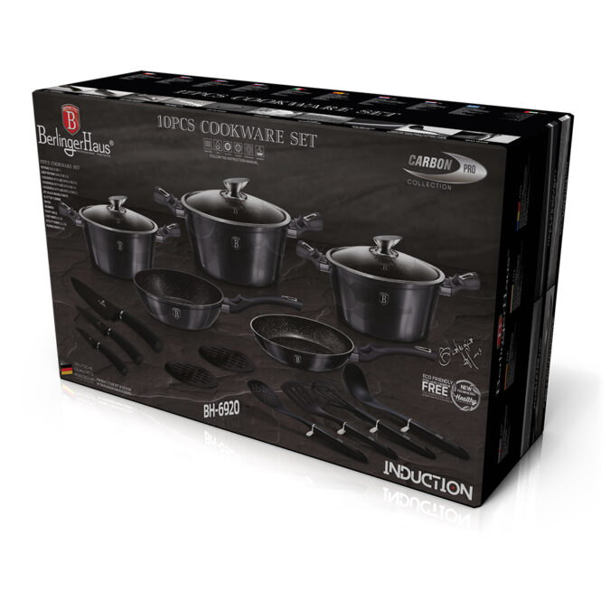 - Dieses elegante 17-teilige Kochgeschirr-Set BH-6920 Carbon Pro Collection besteht aus geschmiedetem Aluminium-Dickwandkörpermaterial und einer 3-lagigen Antihaft-Marmorbeschichtung.
