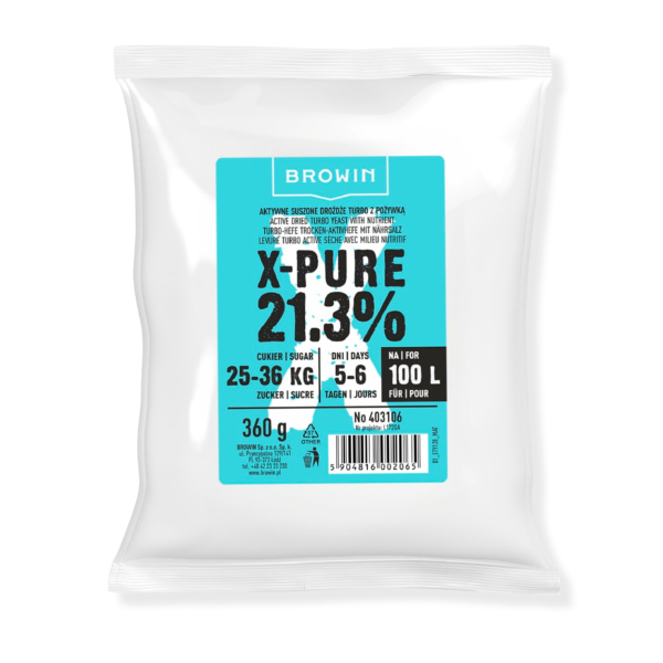 Hefe TURBO X-PURE 100l ist eine Kombination aus aktiven Alkoholhefen mit hohem Alkoholgehalt (bis zu 21,3 %).