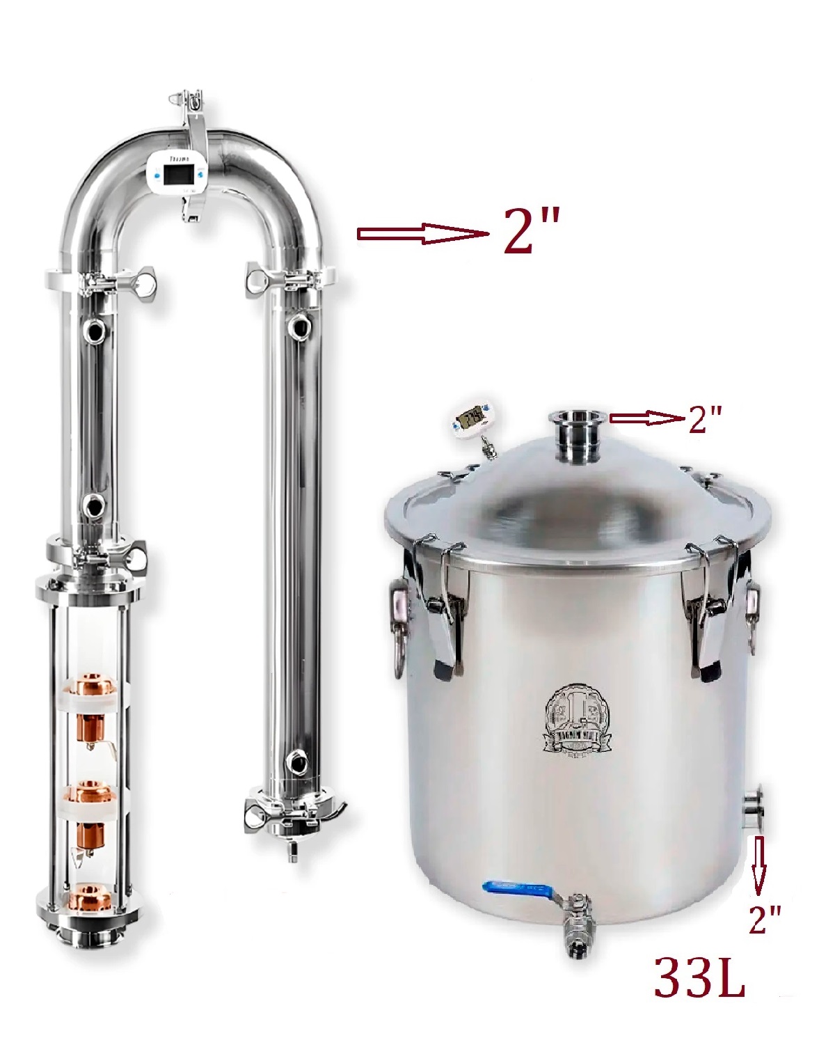 Babylon Crystal-Kolonne (2″-Klemme) mit 33-Liter-Kuppelbehälter (mit Heizelement-Auslass).