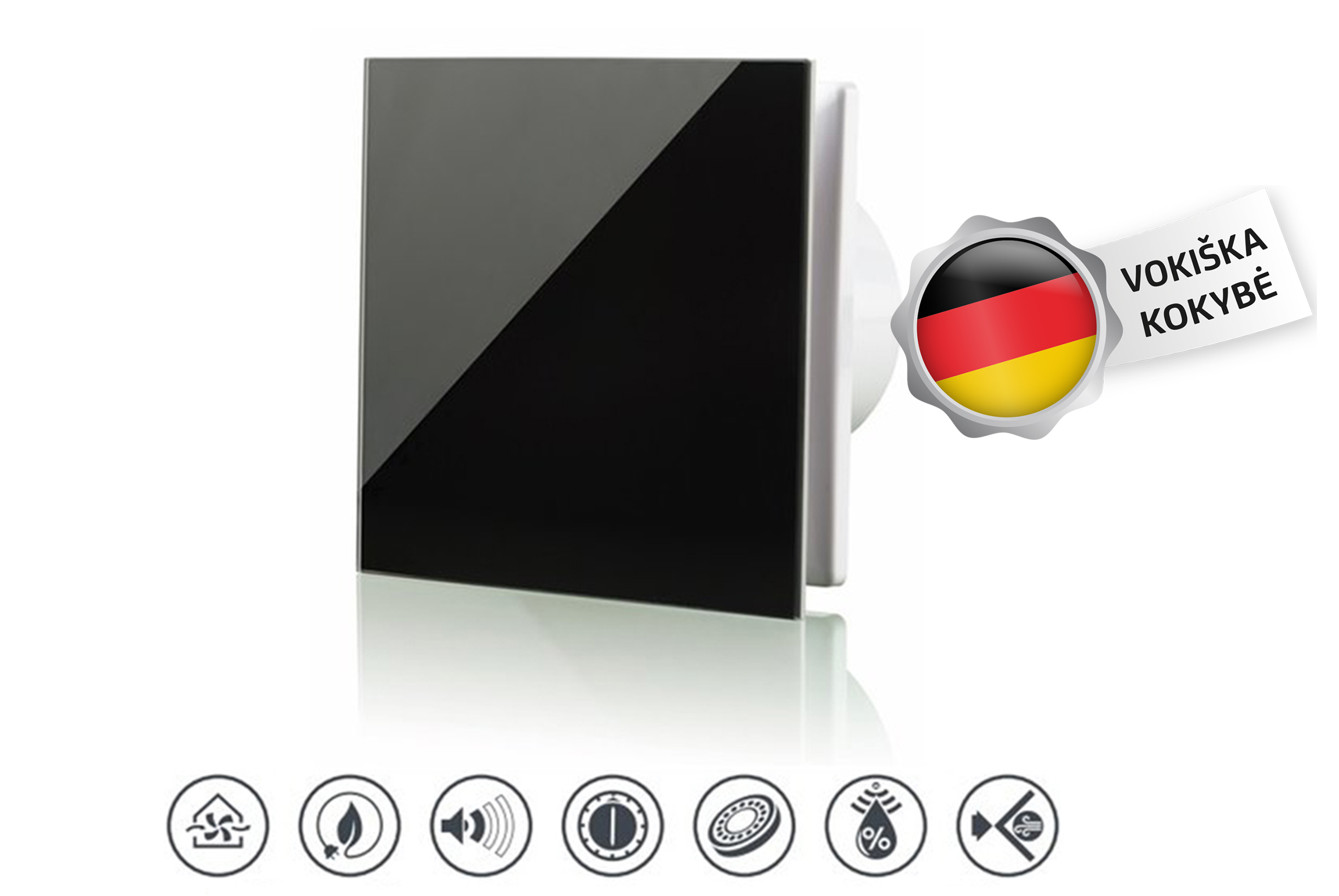 Die von „Vlano“ (Deutschland) hergestellten innovativen Abluftventilatoren „A-GLAS“ sind wahlweise mit Standardausstattung, Timer, Feuchtigkeitssensor oder einer Kombination aus Feuchtigkeitssensor und Timer erhältlich. Diese Ventilatoren werden zur kontinuierlichen und periodischen Belüftung von Bädern, Duschen, Küchen und anderen Wohnräumen eingesetzt. Dieser Ventilator besticht zudem durch sein modernes und ästhetisches Design, wobei eine weiße Glasfrontplatte im Lieferumfang enthalten ist. Die moderne Elektronik des Ventilators und die integrierten Funktionen sorgen für ein gutes Raumklima. Dieser Abluftventilator ist energiesparend und leise, mit einem Stromverbrauch von nur 17 W (je nach Ausstattung). Wartungsfreier Kugellagermotor. Der Motor mit Kugellagern zeichnet sich durch eine lange Lebensdauer aus. Er ist für den Dauerbetrieb konzipiert und erfordert keine Wartung. In diesem Ventilator ist ein Rückschlagventil integriert, das dazu dient, das Zurückströmen von Luft in den Raum oder Wärmeverluste zu verhindern, wenn der Ventilator im Standby-Modus oder ausgeschaltet ist. Ventilatoren mit der hohen Schutzart IP 44 werden zur Belüftung von Feuchträumen (Bäder, Schwimmbäder, Saunavorräume…) eingesetzt. Die Haushalts-Abluftventilatoren „A-GLAS“ werden in Wohnräumen, Wohnungen, Reihenhäusern; Büros; Nebenräumen; Geschäftsräumen; Restaurants, Gesundheitseinrichtungen, Kindertagesstätten eingesetzt.