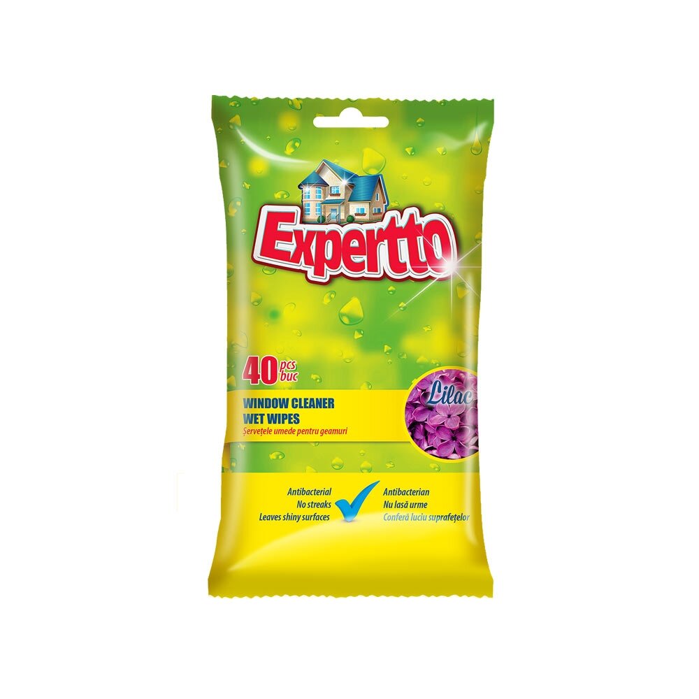 Antibakterielle feuchte Tücher für Fenster EXPERTTO, 40 Stück