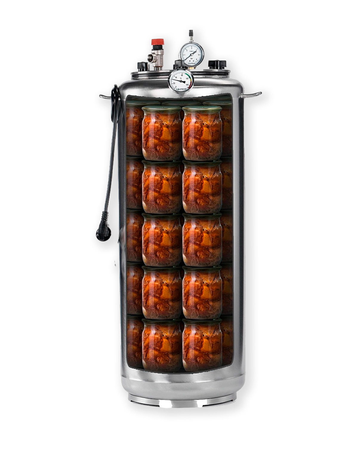Der Dampfkocher muss nicht voll beladen sein, es können beliebige Anzahlen von Gläsern konserviert werden (von 1 Glas bis zur vollen Ladung).