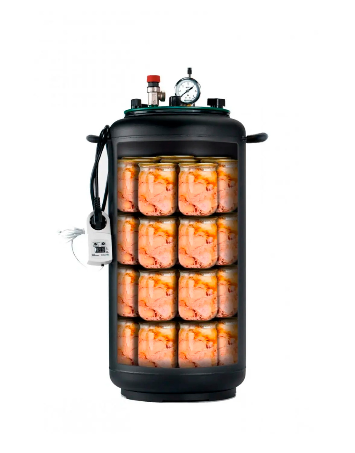 Der Autoklav muss nicht unbedingt voll beladen sein, es können beliebige Anzahlen von Gläsern konserviert werden (von 1 Glas bis zur vollen Ladung).