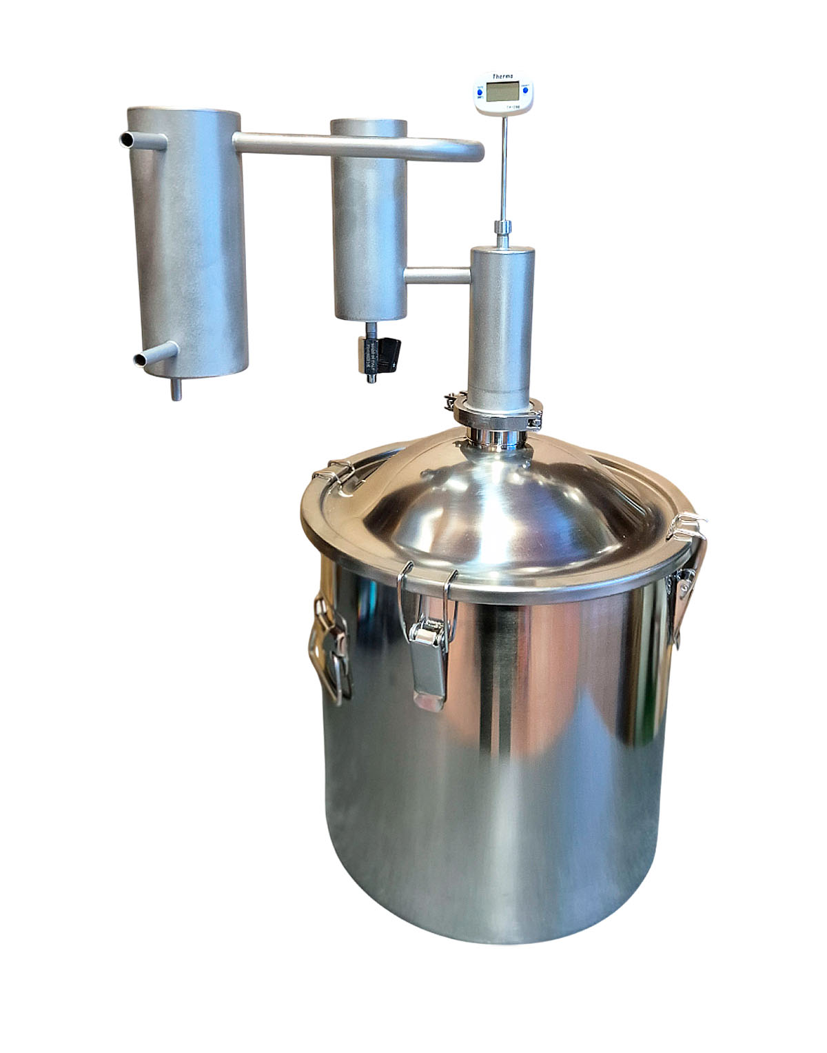 1) BEAM-Destillierapparat (“Kopf”) – ein klassischer Kühler mit einem Trockenverdampfer (Absatzgefäß), aus rostfreiem Stahl AISI 304 gefertigt;
