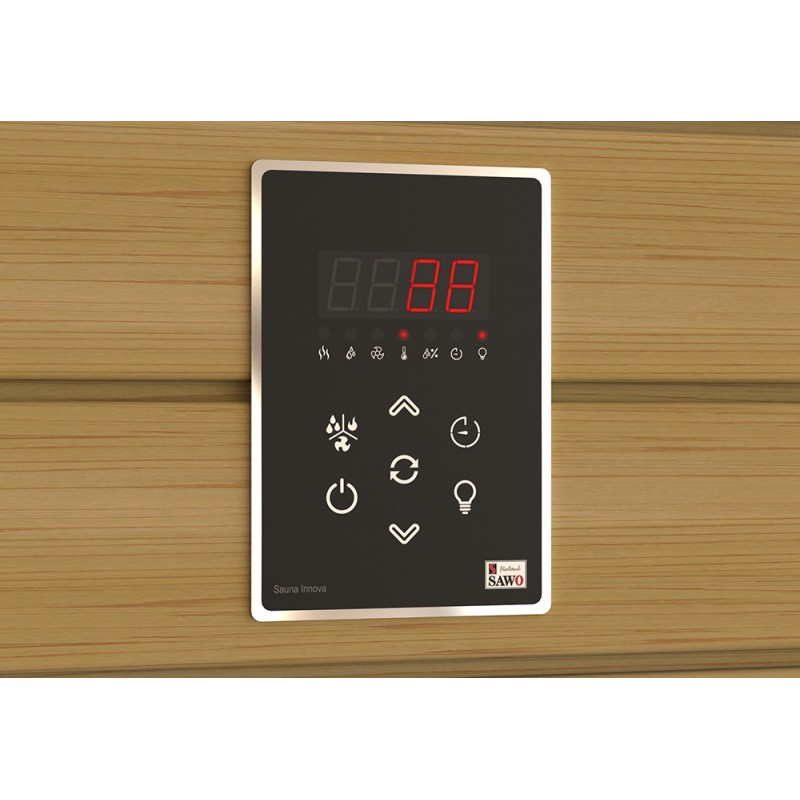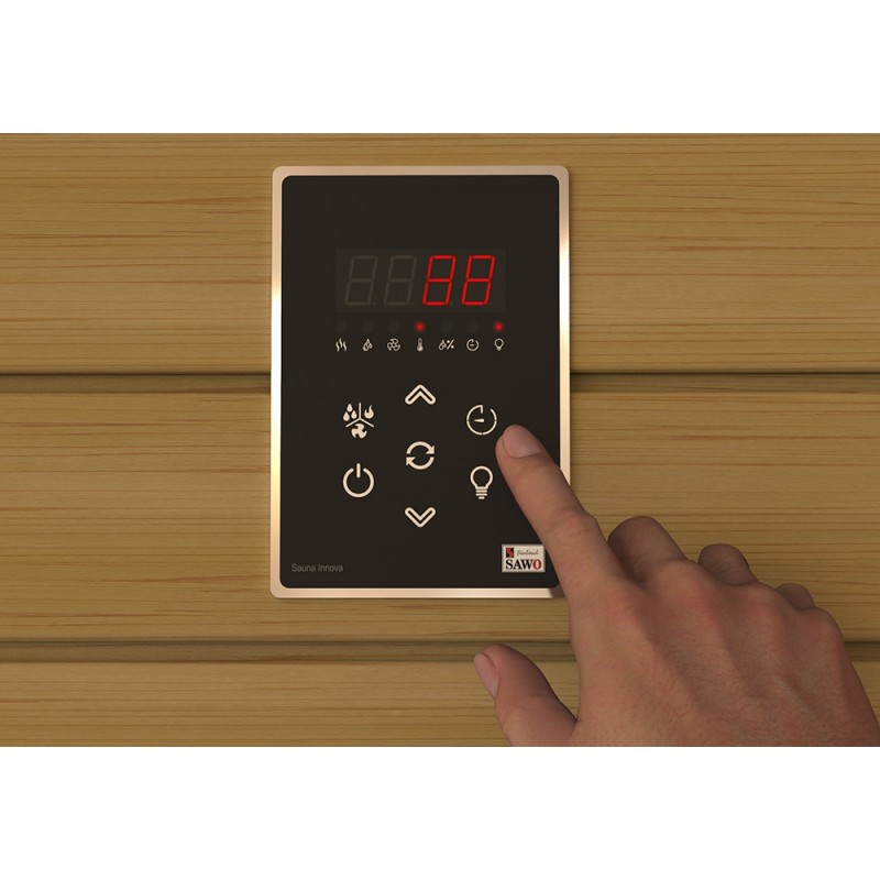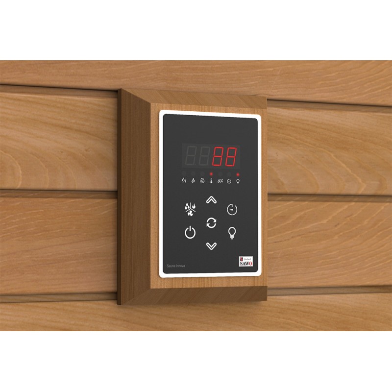 Die Schnittstelle „INC-S-V2“ wird in Verbindung mit Sawo Innova Leistungsmodulen verwendet. Sie ermöglicht die Programmierung der Saunatemperatur, der Betriebszeit sowie die Steuerung von Beleuchtung und Belüftung. Sie ist eine ideale Komponente für die Ergänzung von „Sawo Nordex Floor“ oder anderen leistungsstarken Elektroöfen, die eine Fernsteuerung erfordern.
