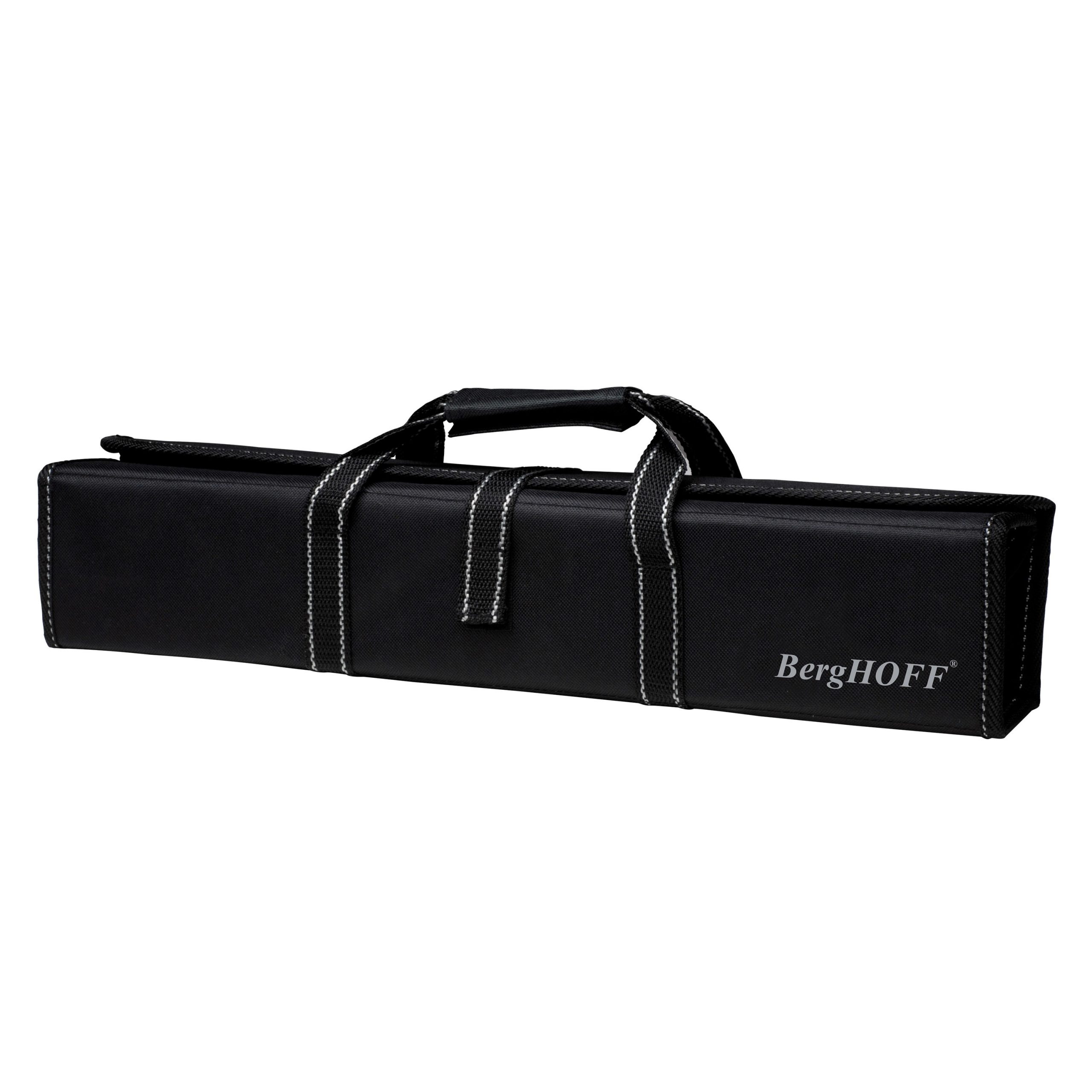 - Das Set beinhaltet: Tragetasche, Zange (47 cm), Spatel (45,5 cm), Fleischgabel (47 cm), Steakmesser (42,5 cm), Pinsel (47 cm)