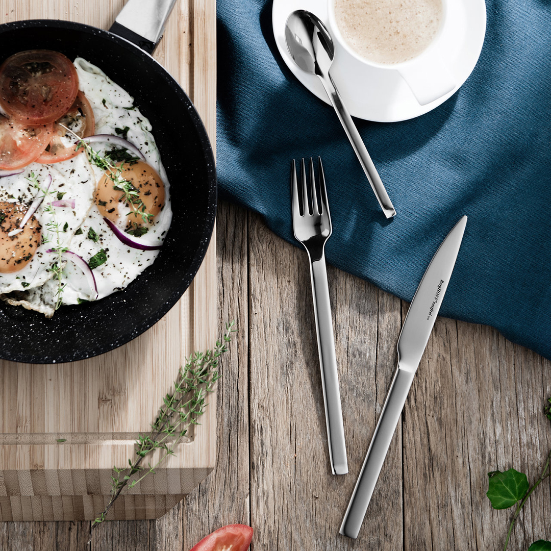 Alle Besteckteile sind aus hochwertigem 18/10 Edelstahl gefertigt. Dank der einteiligen Stahlkonstruktion sind sie extrem langlebig, langlebig und hygienisch. Die glänzende, polierte Oberfläche behält ihren Glanz lange, ist beständig gegen Säuren, Laugen und Korrosion und leicht zu reinigen.