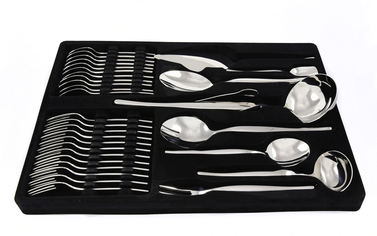 Komplettes 72-teiliges Besteckset für 12 Personen. Das Set enthält alle möglichen Besteckteile – von den grundlegenden bis hin zu Servierbesteck – die für ein luxuriöses Tischgedeck benötigt werden. Ideal als Geschenk zur Hochzeit, zum Einzug oder zu einem anderen wichtigen Anlass.
