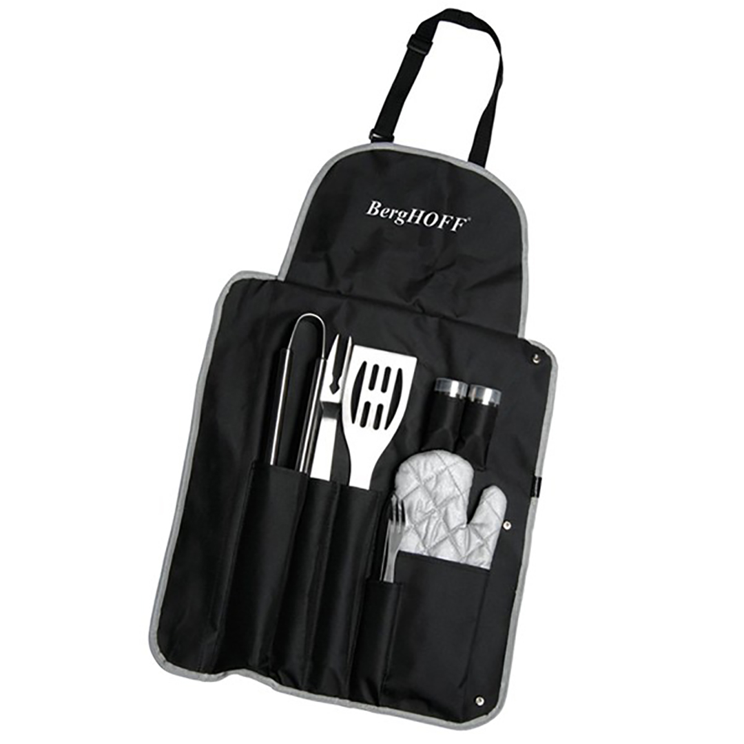 Mit Freunden in der Natur zubereitete Gerichte sind immer am leckersten, und der Garvorgang wird noch angenehmer, wenn Sie praktische und hochwertige Werkzeuge zur Hand haben! Das 9-teilige Grillset von BergHOFF ist alles, was ein Grill-Enthusiast braucht, bequem verpackt in einer stilvollen Schürze, die sich in einen Werkzeugkoffer verwandelt.