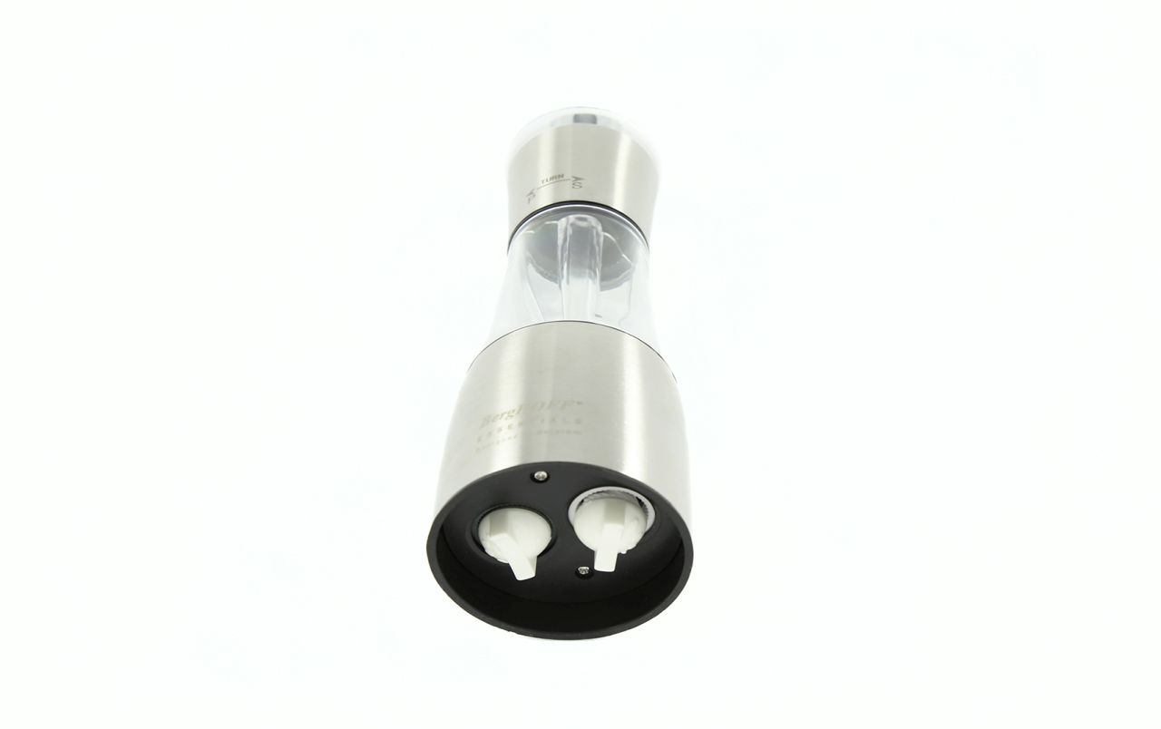 Verabschieden Sie sich von separaten Salz- und Pfeffermühlen! BergHOFF “Duo” ist ein revolutionäres Küchenaccessoire, das die beiden wichtigsten Gewürze in einem eleganten Gehäuse vereint. Sein einzigartiger Mechanismus ermöglicht es Ihnen, Gerichte mühelos zu würzen: Drehen Sie einfach den oberen Teil in die eine Richtung, um frisch gemahlenen Pfeffer zu erhalten, und in die andere, um Salz zu mahlen. Das spart nicht nur Platz, sondern verleiht Ihrem Tisch auch Modernität und Funktionalität.