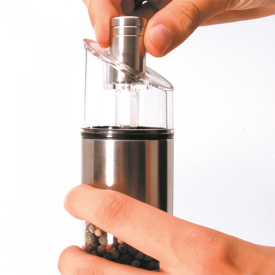 - Zum Nachfüllen den entsprechenden Teil abschrauben und Salz oder Pfefferkörner einfüllen.