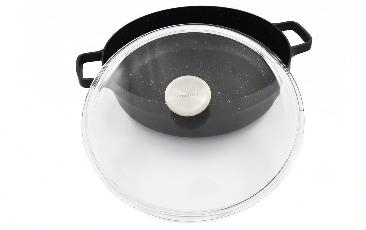 Wir präsentieren den tiefen Schmortopf aus der BergHOFF GEM Kollektion – die ideale Lösung für alle, die ein einzelnes Kochgeschirr suchen, das für die Zubereitung einer Vielzahl von Gerichten geeignet ist. Diese Pfanne vereint die besten Eigenschaften: ein großes Fassungsvermögen von 4,6 Litern, hohe Ränder, eine Antihaftbeschichtung und, was am wichtigsten ist, zwei kurze, hitzebeständige Griffe, die es ermöglichen, dieses Kochgeschirr nicht nur auf dem Herd, sondern auch im Ofen zu verwenden. Er ist Ihr zuverlässiger Partner, mit dem Sie alles von Aufläufen bis zu Plov problemlos zubereiten können.