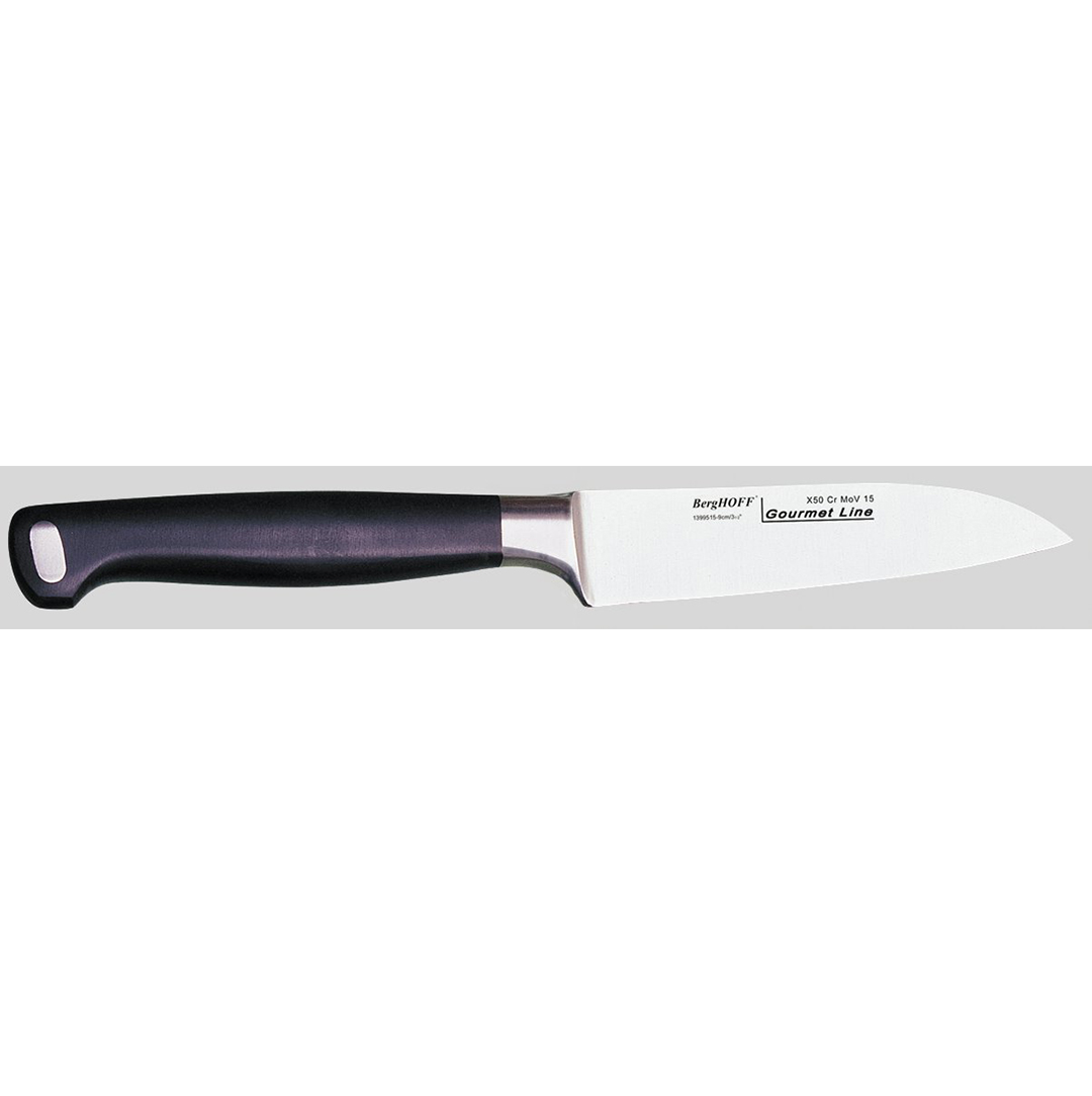 - Es ist ein kleines Messer für Arbeiten, die wir oft mit dem Produkt in der Hand ausführen: Schälen von Gemüse oder Obst, Entfernen von Kernen, Ausschneiden von “Augen” und andere kleine Schneidearbeiten.