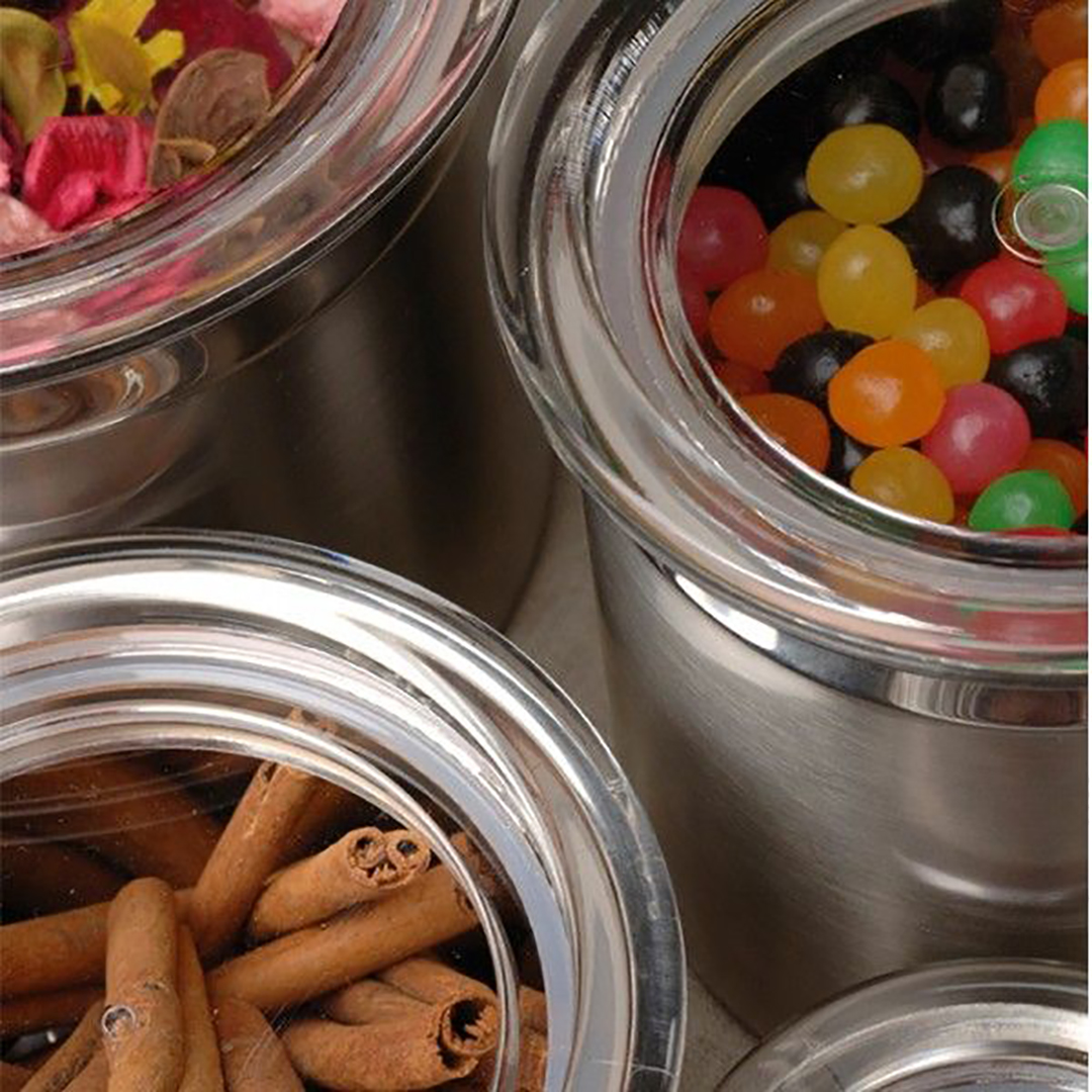 - Elegantes Design: Das glänzende Gehäuse aus poliertem Stahl sieht äußerst stilvoll und modern aus. Sie können diese Behälter getrost auf einem offenen Regal oder einer Arbeitsplatte aufbewahren – sie werden zu einem perfekten Einrichtungsdetail.