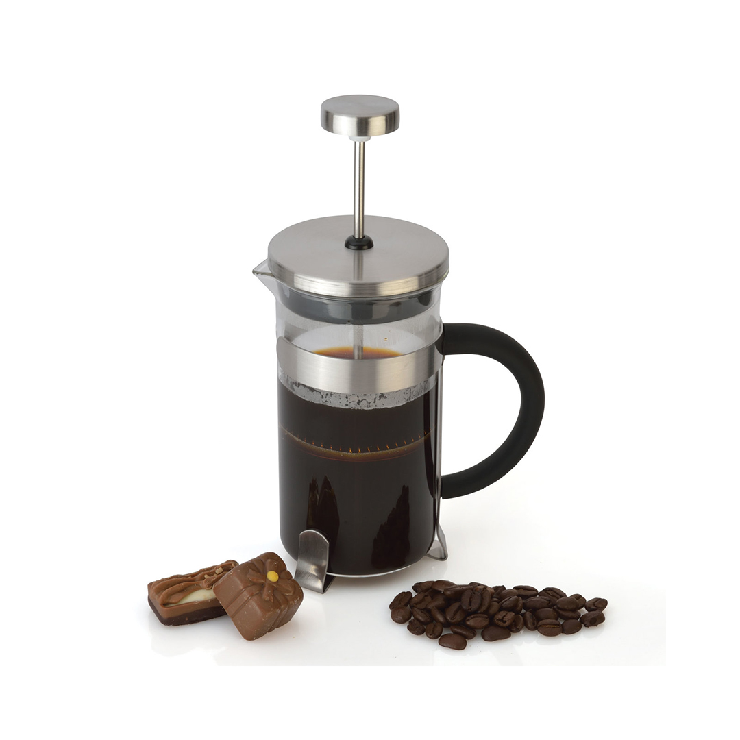 Kompakte Kaffeebereiter mit Stempel (French Press) zum Aufbrühen von gemahlenem Kaffee oder Teeblättern. Das Fassungsvermögen von 350 ml ist ideal für die Zubereitung einer großen oder zwei kleineren Tassen Getränk.