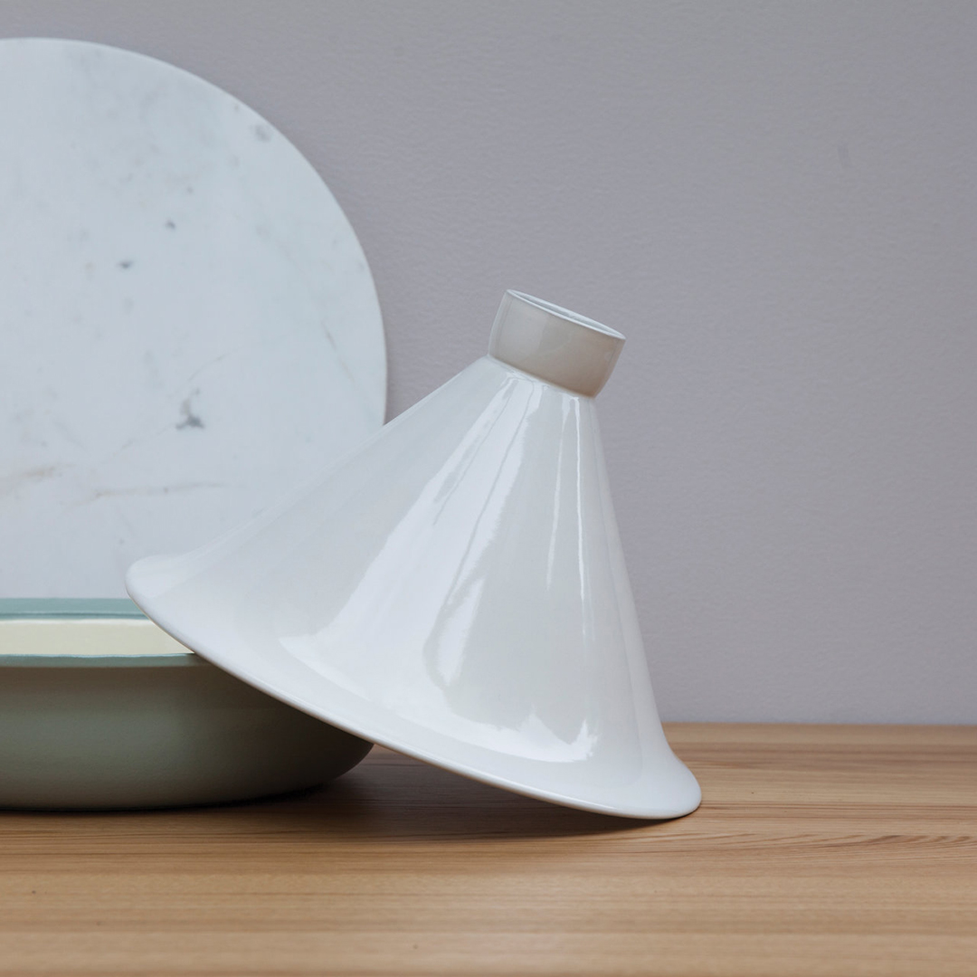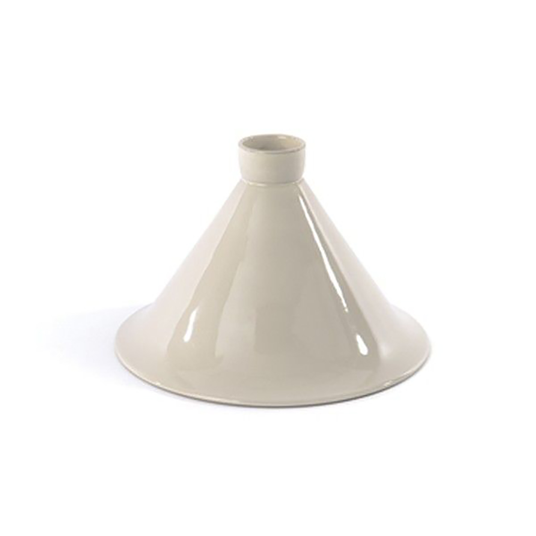 Spezialisierter Keramikdeckel in Kegelform, um eine tiefe Bratpfanne oder einen Schmortopf mit 28 cm Durchmesser in eine Tajine zu verwandeln. Geeignet zum langsamen Schmoren und Kochen auf dem Herd oder im Ofen, um die Feuchtigkeit und den Geschmack der Gerichte maximal zu erhalten.