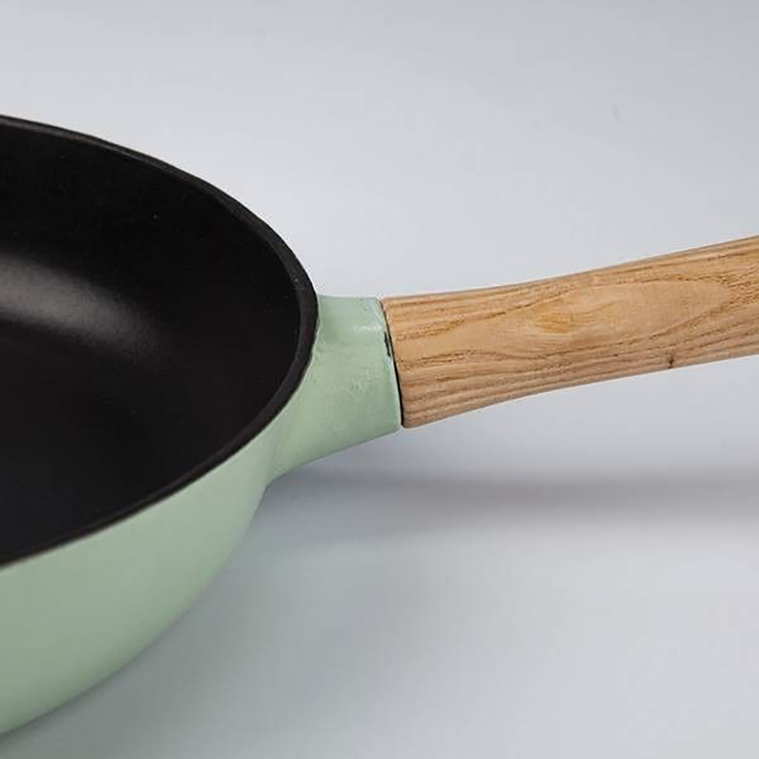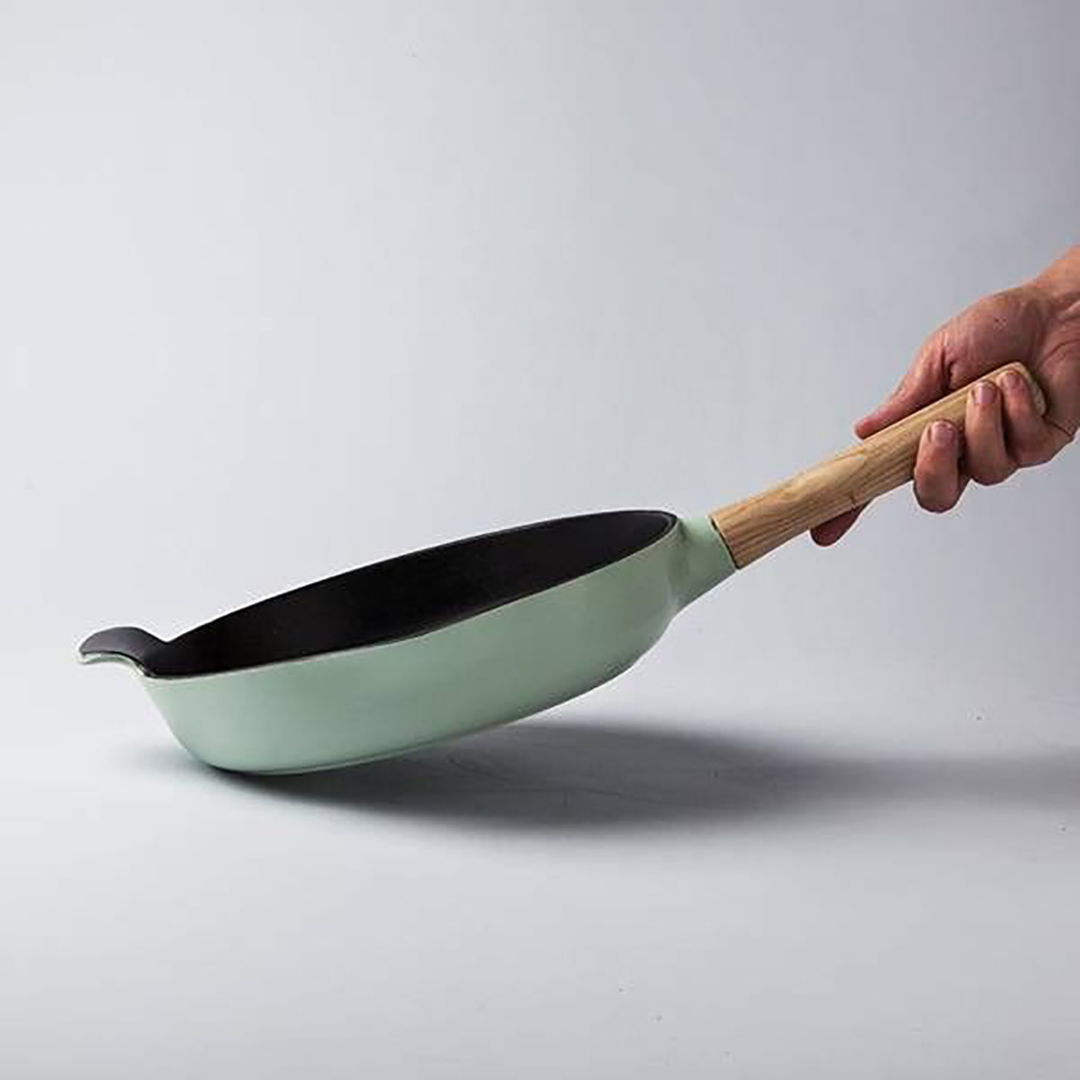Wir präsentieren die RON-Serie Gusseisenpfanne, die die Vorteile von traditionellem Gusseisen mit einem außergewöhnlichen, modernen Design verbindet. Die satte grüne Farbe und der Griff aus naturbelassenem Eschenholz machen diese Pfanne nicht nur zu einem unverzichtbaren Kochutensil, sondern auch zu einem leuchtenden Akzent in Ihrer Küche. Gusseisen (auch bekannt als Roheisen oder Sphäroguss) wird seit langem für seine unübertroffenen Eigenschaften geschätzt: Es erhitzt sich gleichmäßig, speichert die Wärme lange und ermöglicht ein perfektes Anbraten. Mit dem abnehmbaren Griff wird diese Pfanne zu einem vielseitigen Werkzeug, das sowohl für den Herd als auch für den Backofen geeignet ist.