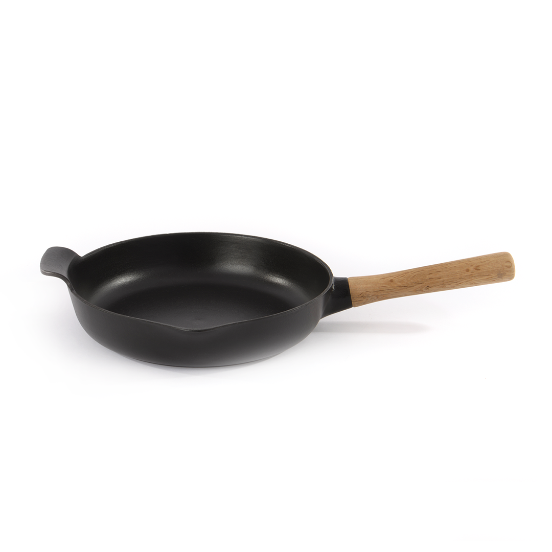 Wir präsentieren die RON-Gusseisenpfanne – eine moderne Klassik, die für echte Feinschmecker entwickelt wurde. Gusseisen (Sphäroguss) wird seit langem für seine unübertroffenen Eigenschaften geschätzt: Es erhitzt sich gleichmäßig, speichert die Wärme lange und ermöglicht eine perfekte Kruste, die mit anderen Pfannen nicht zu erreichen ist. BergHOFF hat diese traditionellen Eigenschaften mit modernem Design und Funktionalität kombiniert – der abnehmbare Griff aus Eschenholz macht diese Pfanne zu einem vielseitigen Werkzeug, das sowohl für den Herd als auch für den Ofen geeignet ist.