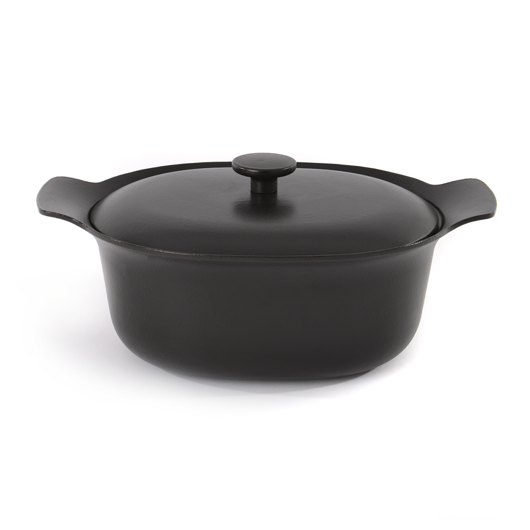 Wir präsentieren den preisgekrönten ovalen Bräter aus Gusseisen der BergHOFF RON Serie – das Schmuckstück Ihrer Küche, das einzigartiges Design und unübertroffene Gusseisen-Eigenschaften vereint. Das klassische Schwarz und der Griff aus Naturholz verleihen dem Topf Exklusivität, während Sie mit seiner Funktionalität die köstlichsten Eintöpfe zubereiten können.
