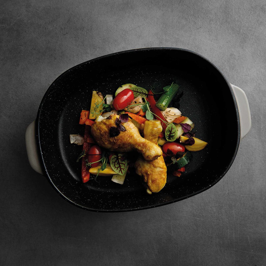 Die Form ist aus hochwertiger, langlebiger Keramik mit einer Emaillebeschichtung gefertigt. Die Keramik verteilt die Wärme sanft und gleichmäßig, so dass die Speisen gleichmäßig garen, nicht anbrennen und saftig bleiben. Die robuste Emaillebeschichtung ist kratz- und fleckenbeständig und die Innenschicht ist antihaftbeschichtet, so dass die Form besonders leicht zu reinigen ist.