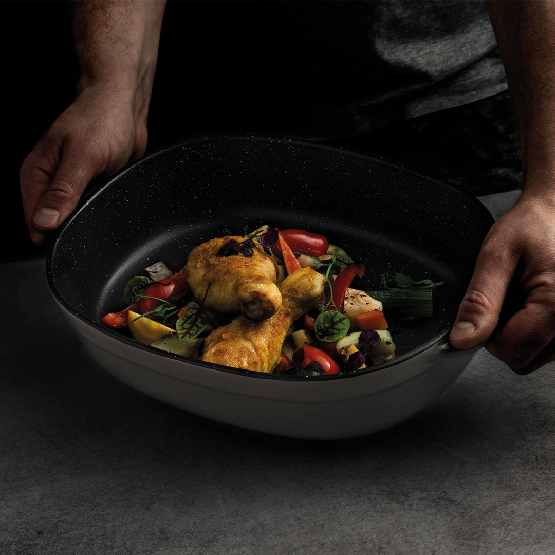 Breite, integrierte Griffe ermöglichen ein sicheres und bequemes Aufnehmen der heißen Form. Diese Auflaufform ist äußerst vielseitig – sie kann sicher im Ofen bis zu 230°C, in der Mikrowelle und nach Gebrauch in der Spülmaschine verwendet werden.
