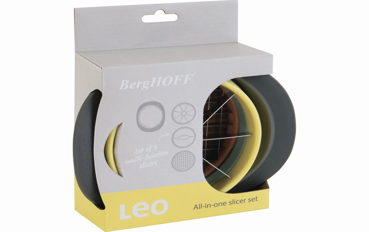 Wir präsentieren das vielseitige BergHOFF LEO Schneideset, das zu einem unverzichtbaren Helfer in Ihrer Küche wird. Dieses innovative “Drei-in-Eins”-Werkzeug wurde entwickelt, um die Zubereitung von Obst und Gemüse schnell, sicher und perfekt sauber zu gestalten. Das Set besteht aus einer ergonomischen Basis mit Griffen und drei leicht austauschbaren, extrem scharfen Edelstahleinsätzen für verschiedene Aufgaben. Ab sofort sind Apfelspalten für Snacks, Pommes frites als Beilage oder Avocado für Salate mit nur einem Klick zubereitet!