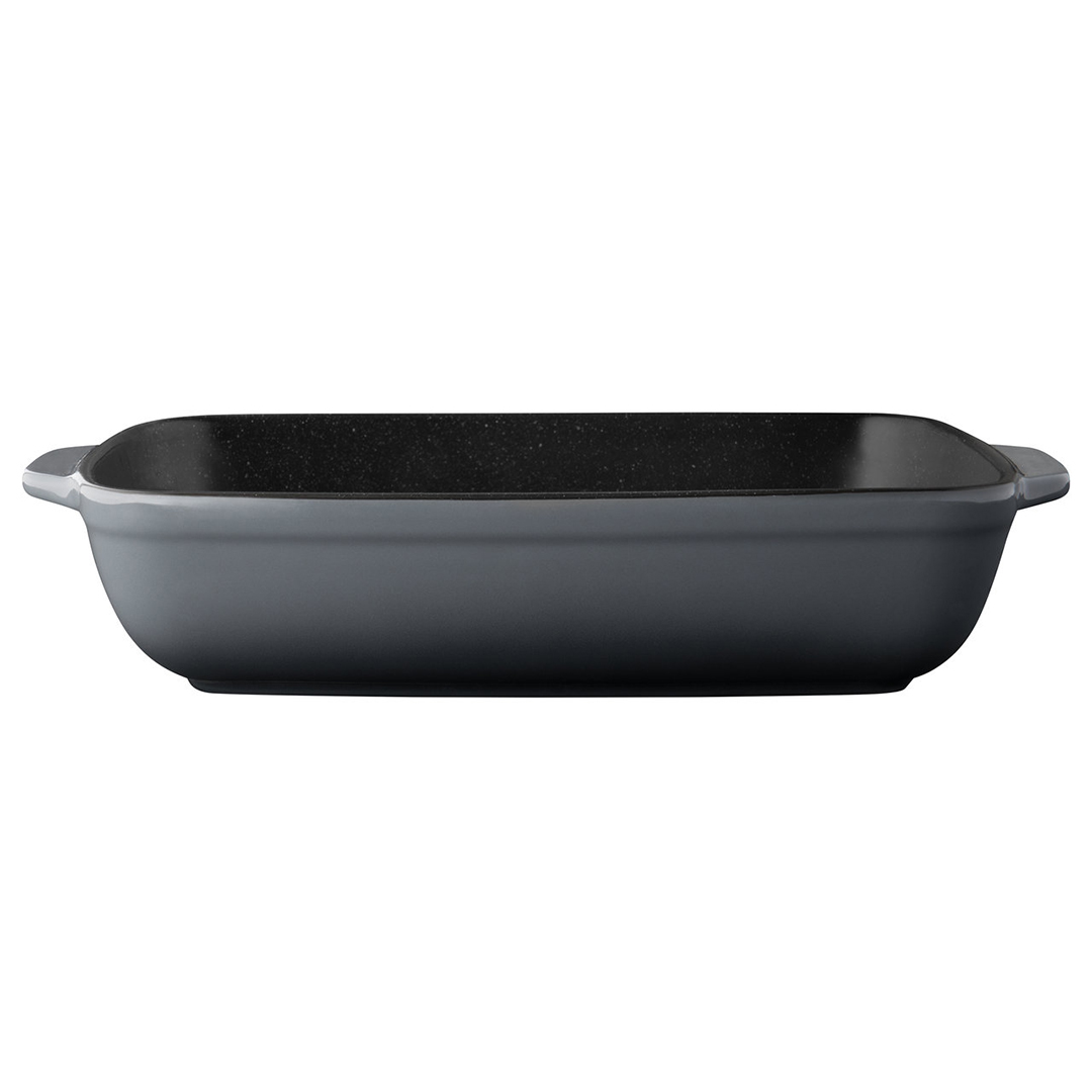 Die Form ist aus hochwertiger, langlebiger Keramik mit Emaille-Beschichtung gefertigt. Die Keramik verteilt die Hitze sanft und gleichmäßig, sodass die Speisen gleichmäßig garen, nicht anbrennen und saftig bleiben. Die robuste Emaille-Beschichtung ist kratz- und fleckenbeständig, und die Innenschicht hat Antihaft-Eigenschaften, wodurch die Form besonders leicht zu reinigen ist.