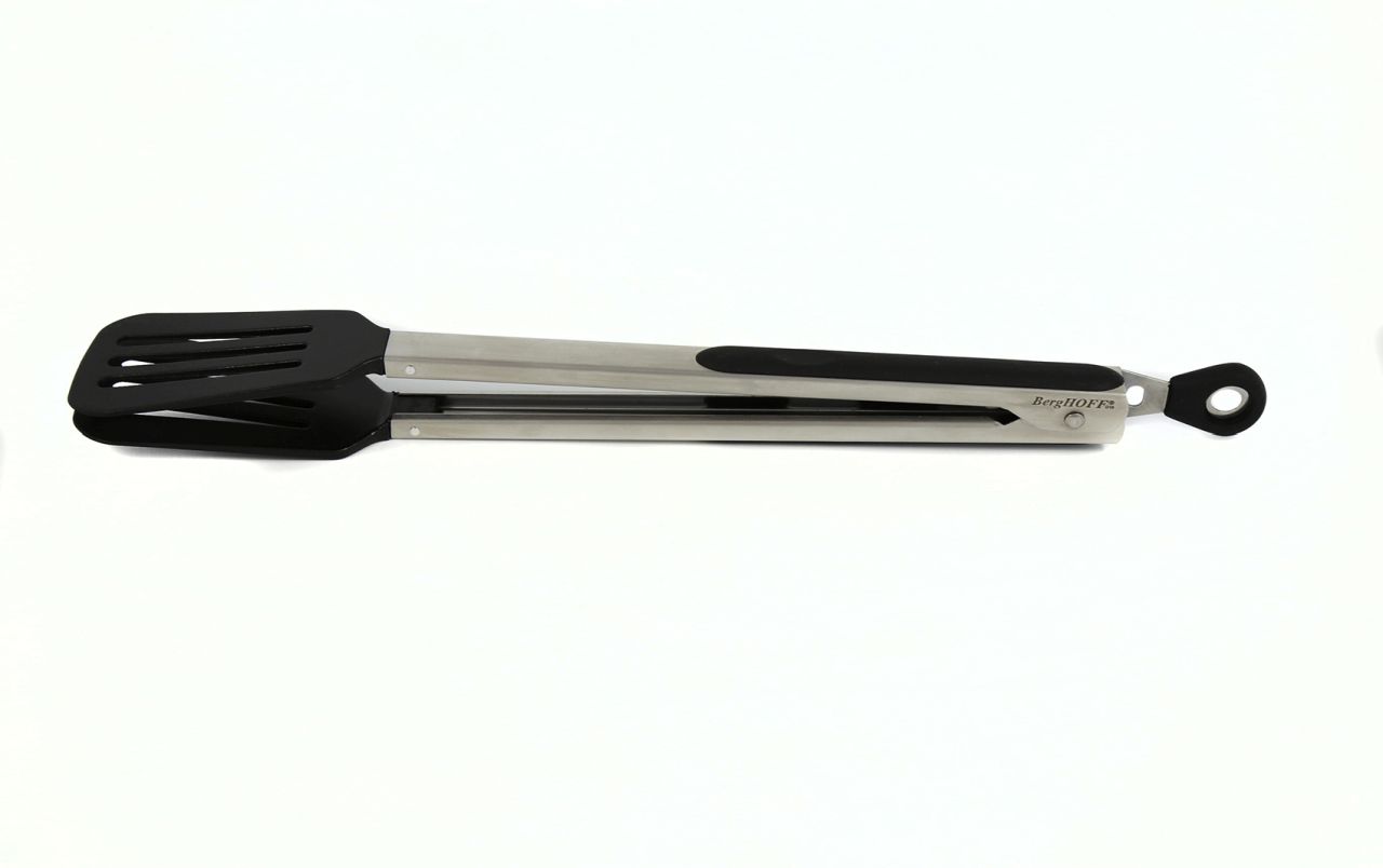 Wir präsentieren BergHOFF Essentials – ein vielseitiges Küchenwerkzeug, das die Funktionalität von Zange und Pfannenwender vereint. Es ist ein unverzichtbarer Helfer für alle, die Wert auf Komfort, Qualität und Langlebigkeit beim Zubereiten und Servieren von Speisen legen. Vergessen Sie mehrere verschiedene Werkzeuge – jetzt können Sie alles mit einem erledigen!