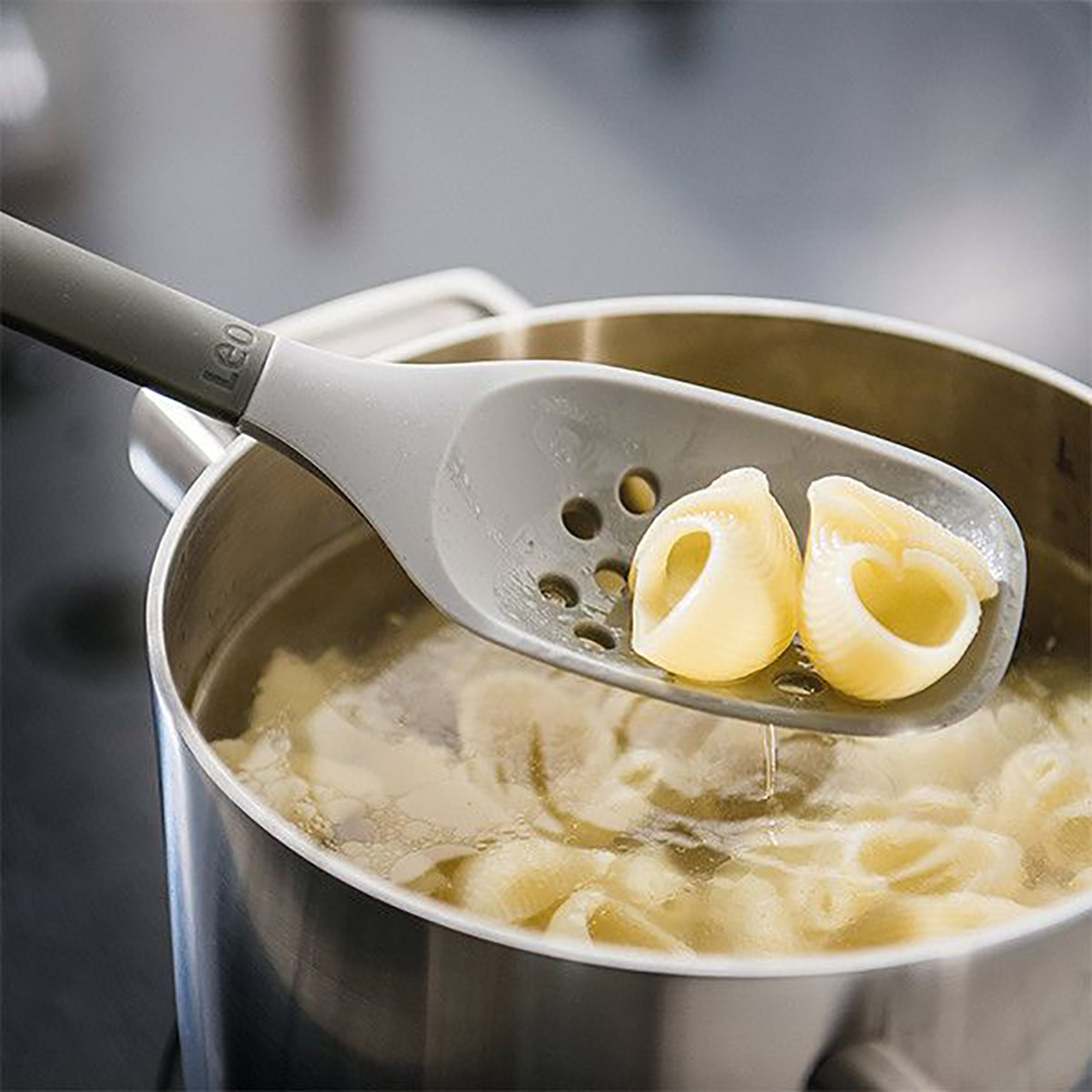 Wir präsentieren den Schaumlöffel aus der LEO Kollektion – ein unverzichtbares Werkzeug, wenn Sie Lebensmittel aus kochendem Wasser, Brühe oder Öl entnehmen müssen. Dieser Löffel wurde entwickelt, um Ihre Arbeit in der Küche so bequem und sicher wie möglich zu gestalten. Sein Arbeitsteil besteht aus hitzebeständigem Silikon, sodass Sie bedenkenlos Teigtaschen oder Gemüse auch aus den empfindlichsten Töpfen mit Antihaftbeschichtung entnehmen können, ohne befürchten zu müssen, diese zu zerkratzen.