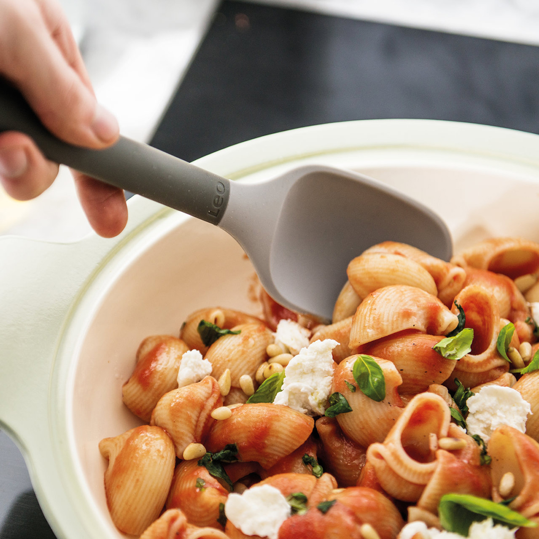 Wir präsentieren den vielseitigen Löffel aus der LEO-Kollektion, ein Muss für jeden, der Wert auf Funktionalität und Qualität legt. Er wurde für eine Vielzahl von Aufgaben entwickelt – vom Mischen von Saucen bis zum Servieren von Gemüse – und zeichnet sich durch sein durchdachtes Design aus. Sein Kopf besteht aus hitzebeständigem Silikon, sodass Sie keine Angst mehr haben müssen, Ihre Lieblingskochgeschirre und -pfannen mit Antihaftbeschichtung zu zerkratzen.