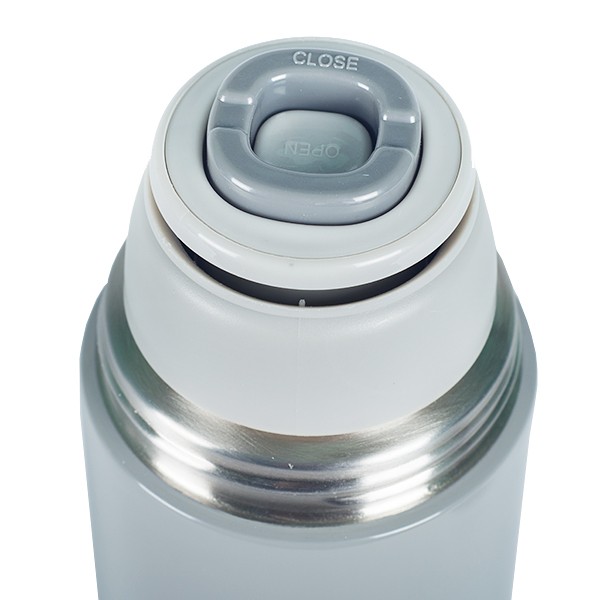 Wie funktioniert das Knopfsystem? In der Mitte des mittleren Verschlusses befindet sich ein Knopf. Wenn Sie ihn drücken, öffnet sich das Innenventil, durch das das Getränk ausgegossen werden kann. Wenn Sie den Knopf erneut drücken, schließt sich das Ventil dicht. So müssen Sie nicht den gesamten Verschluss abschrauben, wodurch weniger Wärme verloren geht.