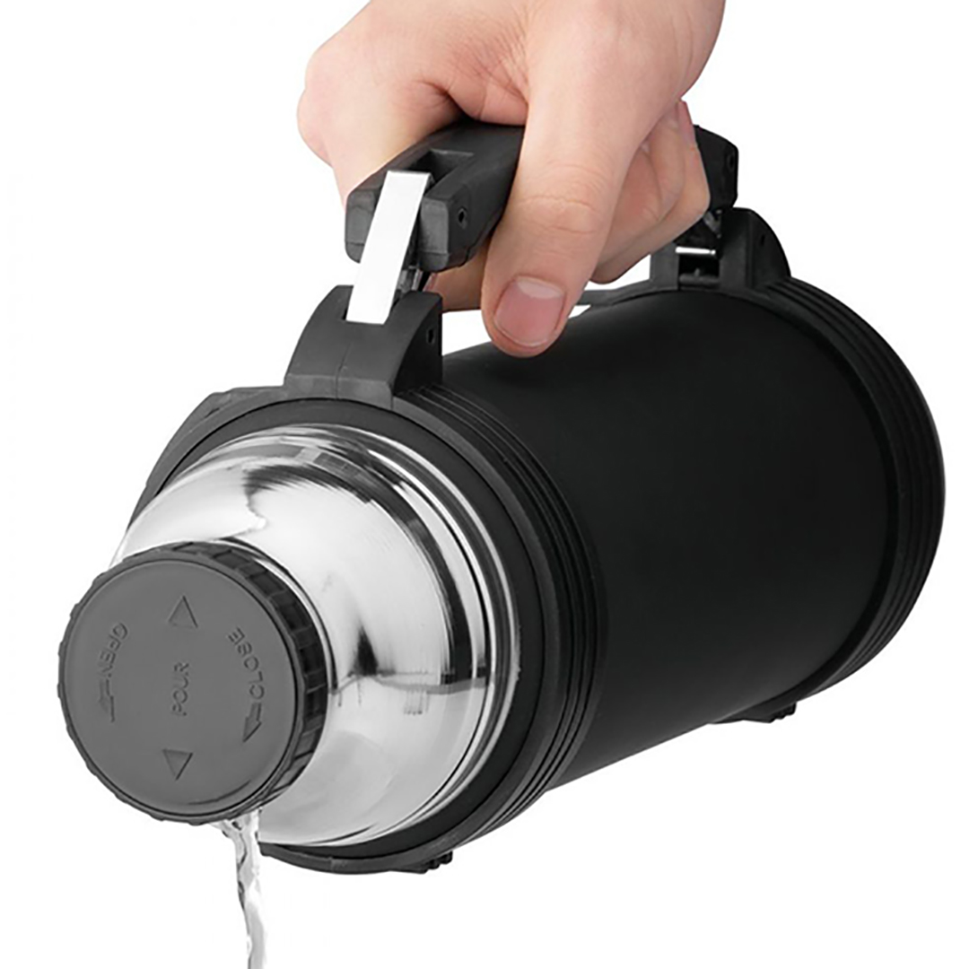 - Maximaler Komfort: Ein breiter, bequemer Griff sorgt für einen festen Halt, und das Ausgießsystem ermöglicht es Ihnen, das Getränk einzuschenken, indem Sie den Verschluss nur leicht öffnen – so geht weniger Wärme verloren. Der Deckel dient als bequemer und stabiler Becher.