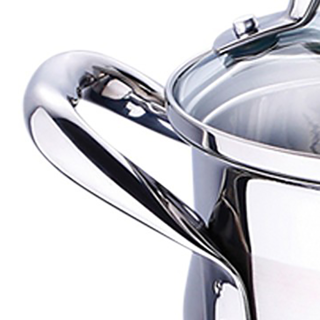 Ein spezieller 3-Schicht-Patent-Thermoakkumulationsboden sorgt für schnelles Aufheizen, eine ideal gleichmäßige Wärmeverteilung und hält die Wärme lange. Dies ermöglicht ein energiesparendes Kochen. Bequeme, hitzebeständige Griffe und ein Deckel aus gehärtetem Glas ermöglichen es, den gesamten Garprozess sicher und bequem zu überwachen.