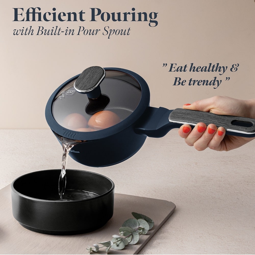 Verwandeln Sie Ihre Küche in eine Oase aus Stil und Funktionalität mit dem “Berlinger Haus BH-8382” Set aus der exklusiven “Deep Sea”-Kollektion. Das satte, matte Blau, kombiniert mit Griffen in grauer Holzoptik, schafft einen modernen und luxuriösen Look. Dies ist Geschirr, mit dem Sie nicht nur kochen, sondern es auch mit Stolz auf den Tisch stellen werden.