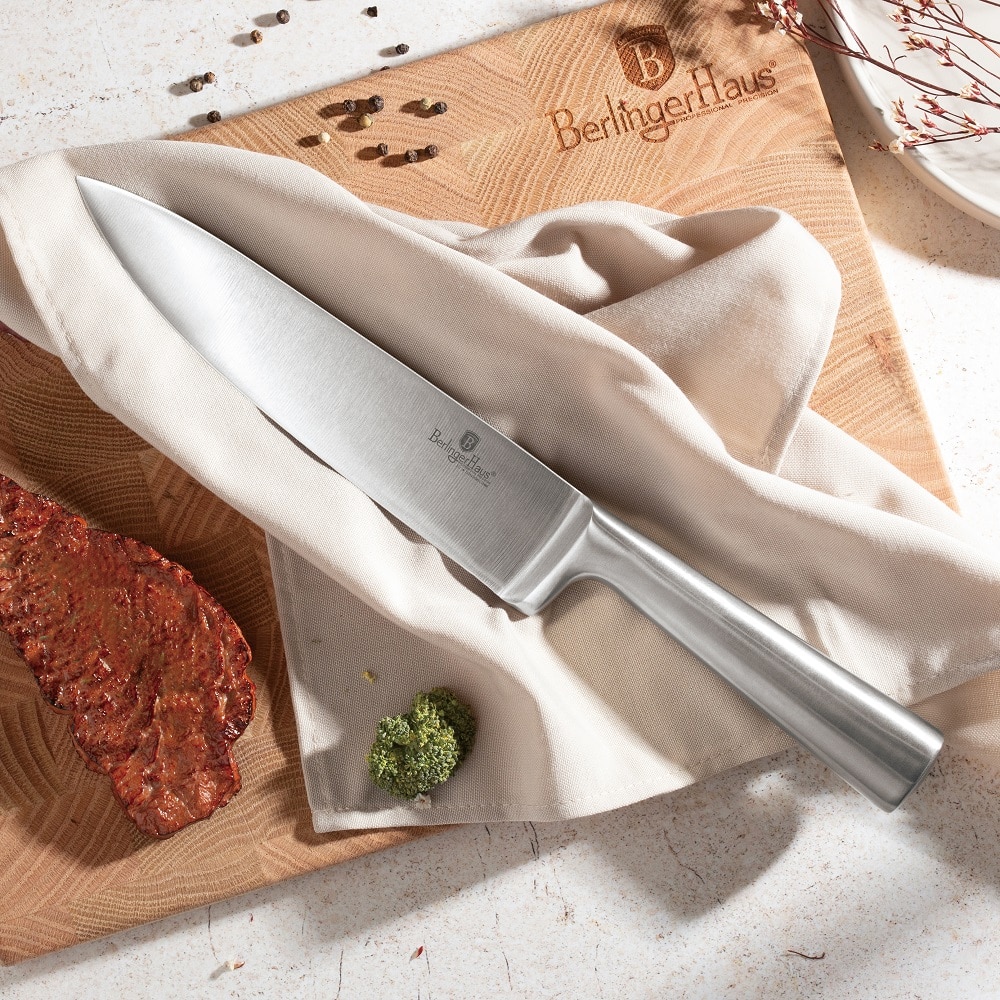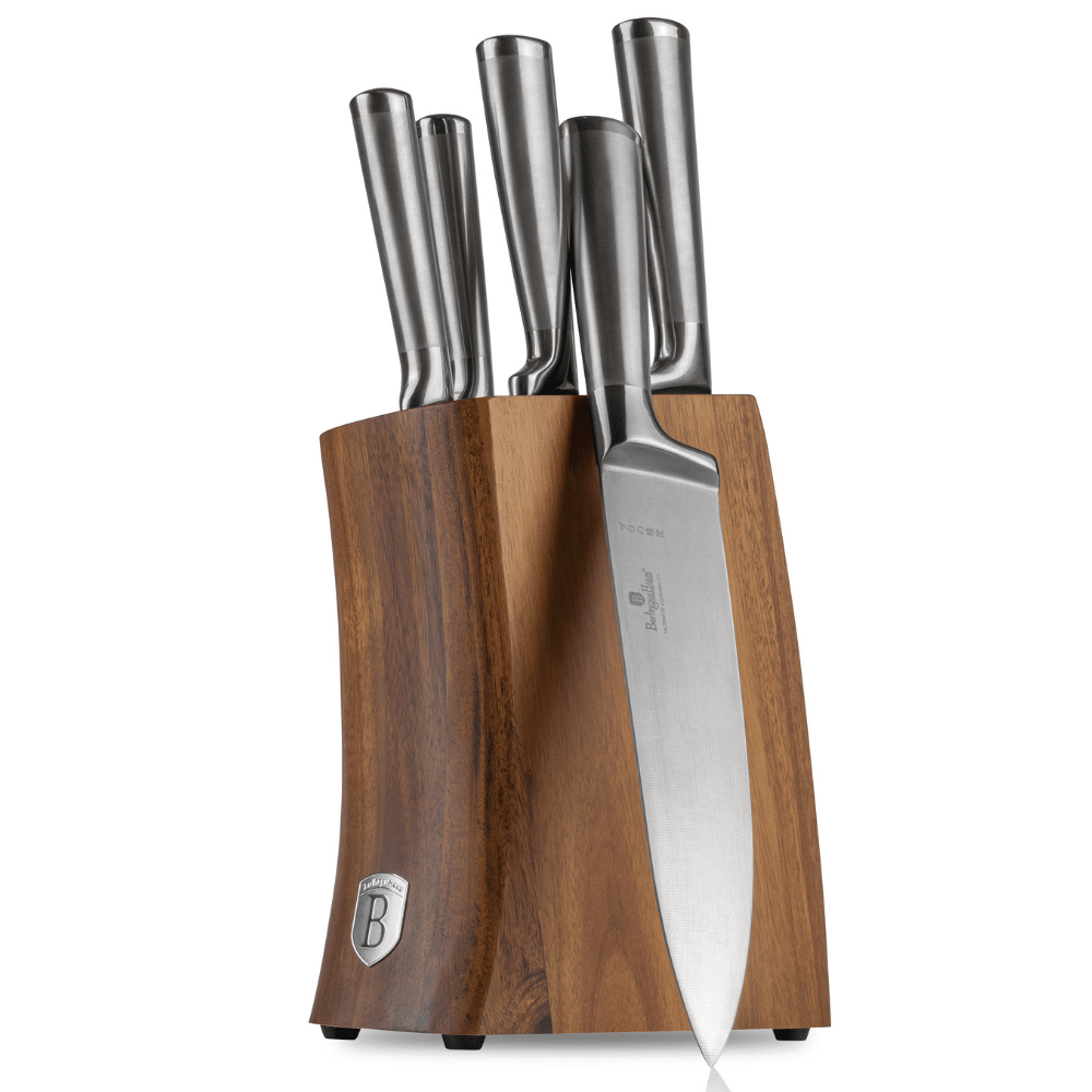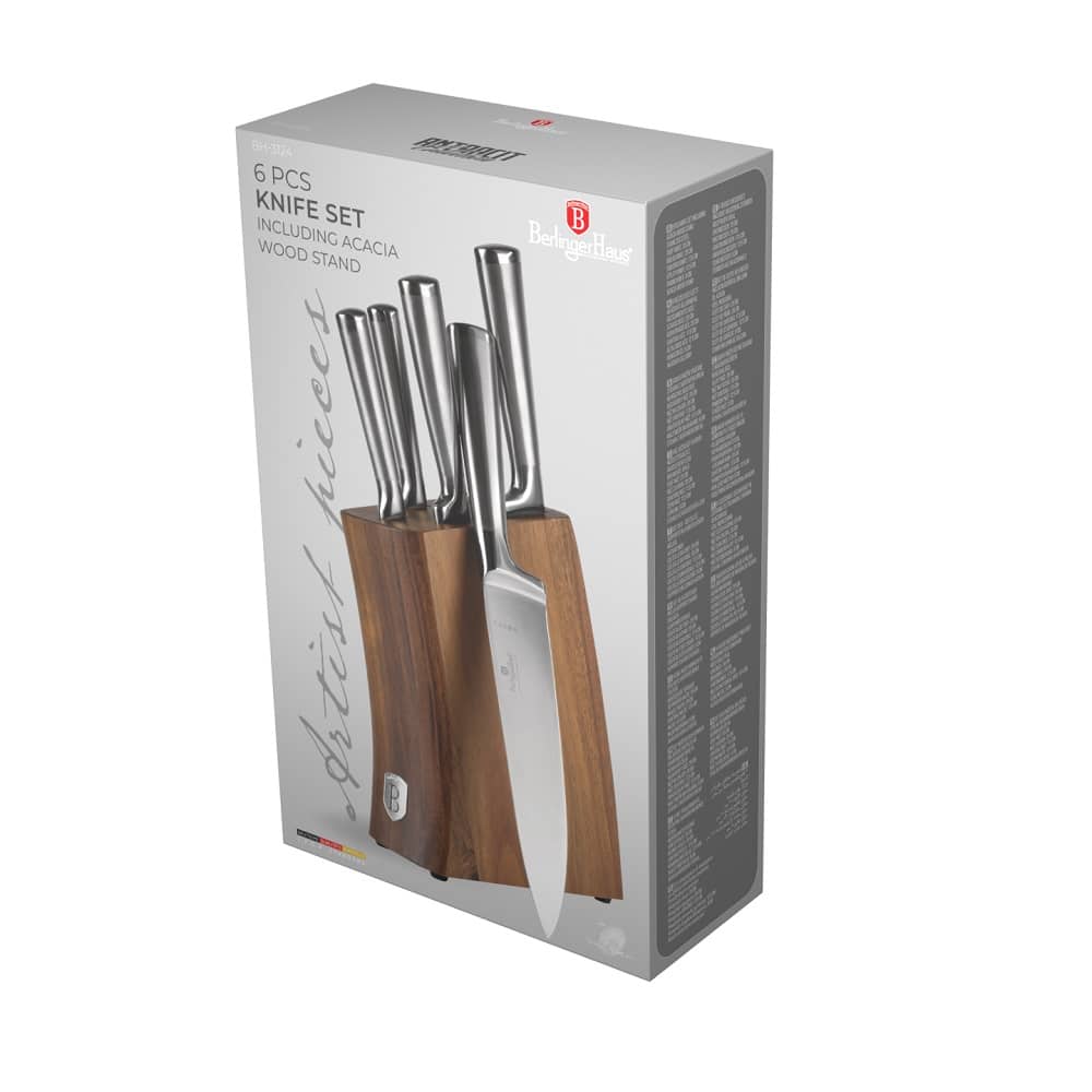Wir präsentieren das „Berlinger Haus“ BH3124 – ein Set, das für diejenigen entwickelt wurde, die nicht nur die Qualität des Kochens, sondern auch die Ästhetik schätzen. Diese Messer zeichnen sich durch eine elegante Edelstahloptik (Satiniert und Spiegelpoliert) aus und sind in einem nachhaltigen, natürlichen Akazienholzständer untergebracht. Egal, ob Sie Brot schneiden, Gemüse hacken oder ein Gourmet-Dinner zubereiten, diese Werkzeuge gewährleisten unübertroffene Präzision und Komfort.