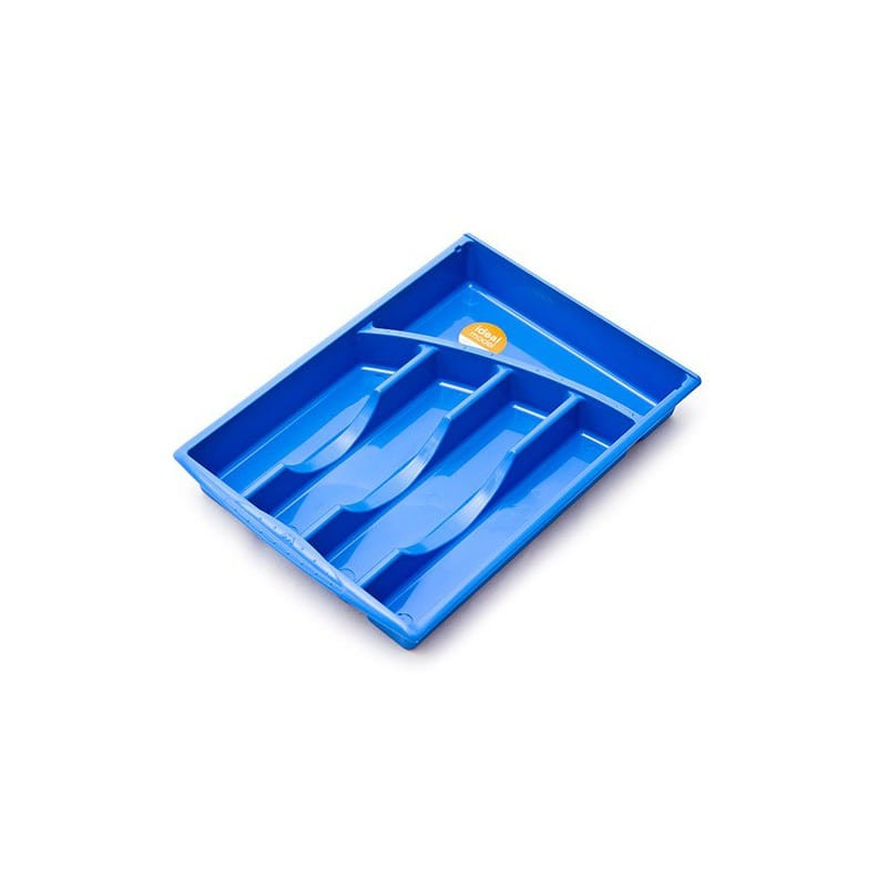 Kunststoffkasten mit 5 Fächern zur ordentlichen Aufbewahrung und Sortierung von Besteck (Löffel, Gabeln, Messer) in der Küchenschublade.