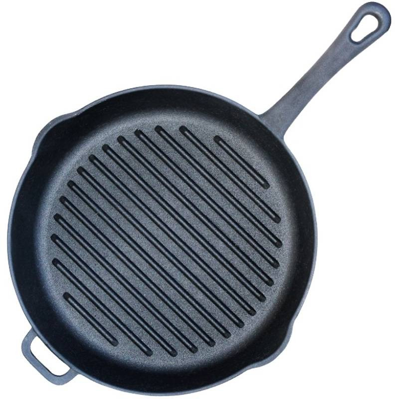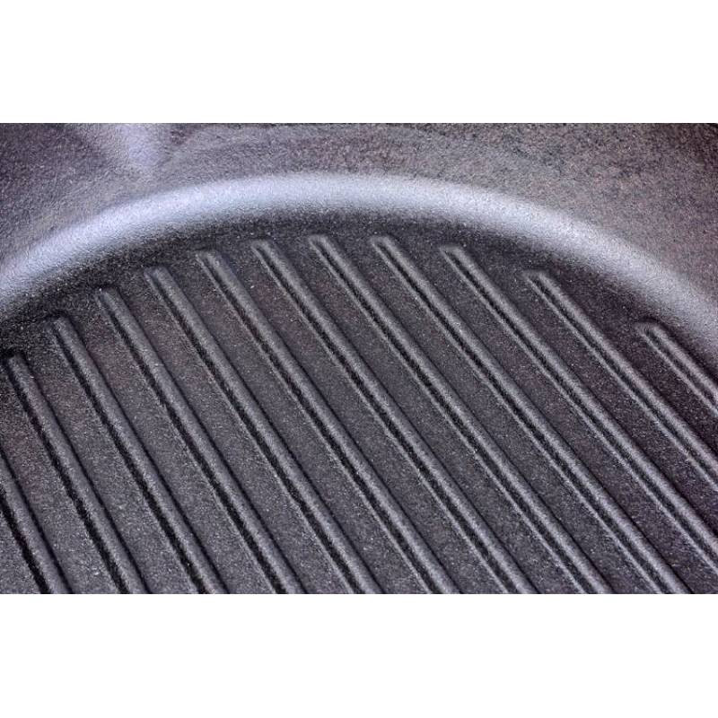 Dank der einteiligen Konstruktion können Sie diese Pfanne nicht nur auf dem Herd verwenden, sondern sie auch direkt in den Ofen stellen oder sogar über offenem Feuer (Grill, Lagerfeuer) verwenden. Der 8,1 mm dicke Boden sorgt für eine gleichmäßige Hitzeverteilung und lange Wärmespeicherung, während die Grillrippen das Abfließen von Fett ermöglichen und schöne Grillstreifen auf dem Steak hinterlassen.