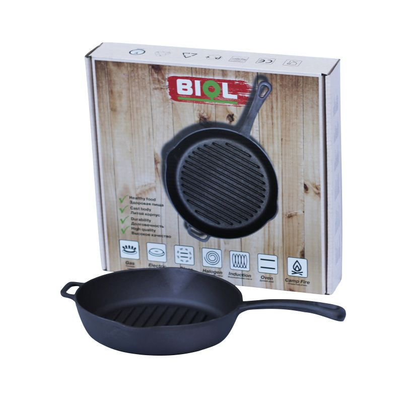 Diese BIOL Pfanne ist aus 100% Gusseisen gefertigt. Das bedeutet, dass sie keine Holz- oder Kunststoffteile hat – der Griff ist mit dem Korpus gegossen. Diese “monolithische” Konstruktion garantiert maximale Haltbarkeit – hier kann einfach nichts abbrechen oder verbrennen.