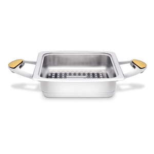 - Das Innere des Quadra-Systems: Quadra-Systemgeschirr besteht aus exklusiven Materialien und kann für verschiedene Zwecke verwendet werden: Waschen und Zubereiten, Kochen im System, Servieren und Aufbewahren von Speisen.