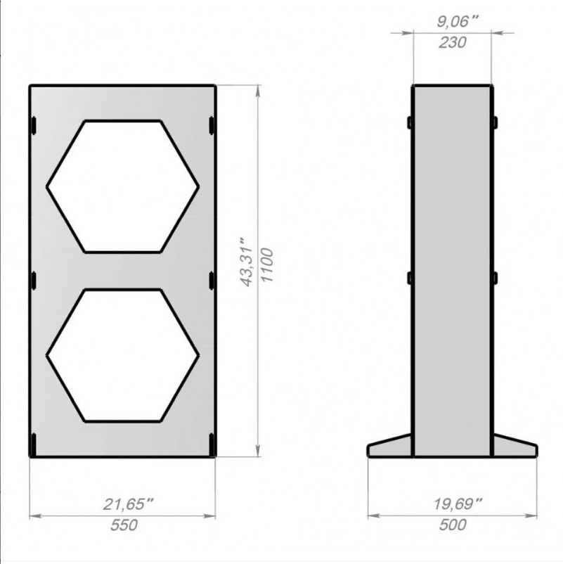 Das Regal „V6 HexS“ wurde für die Lagerung von Brennholz auf kleinem Raum neben einem Kamin, Ofen oder Saunaofen entwickelt. Dank seiner einzigartigen sechseckigen Form können mehrere solcher Regale zu einem „Waben“-System (falls Sie mehrere Einheiten besitzen) miteinander verbunden werden, aber auch ein einzelnes kleines Gestell bietet ausreichend Platz für das Holz, das für einen gemütlichen Abend benötigt wird.