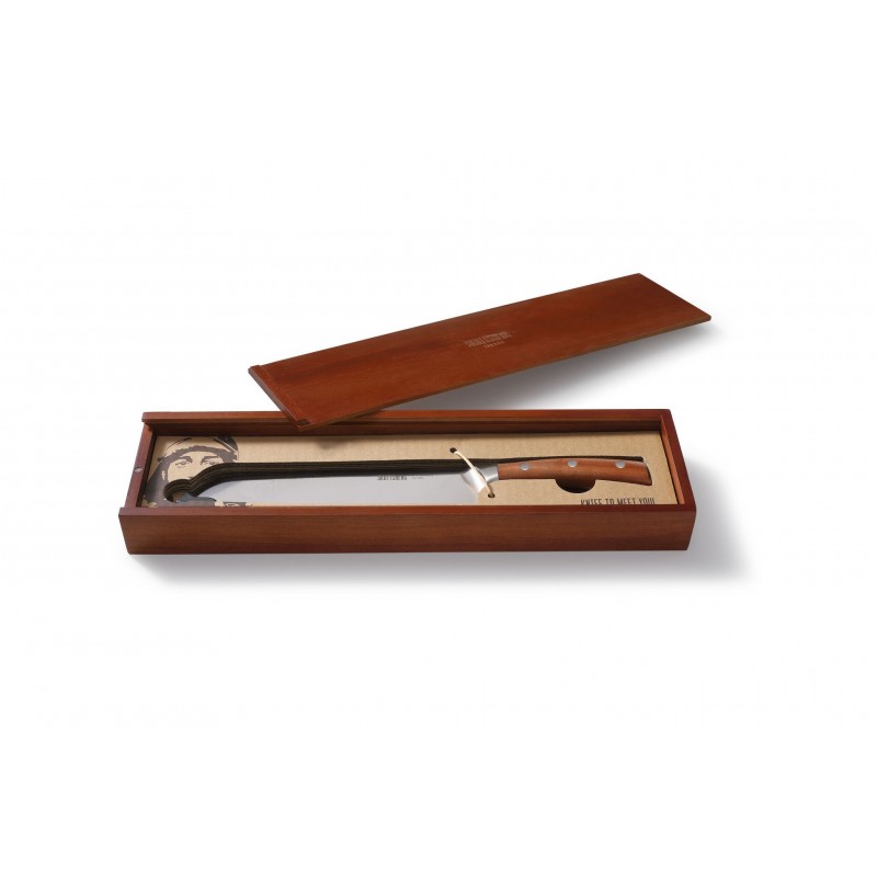 Das Messer wird in einer luxuriösen Holzschachtel geliefert, ideal als Geschenk sowohl für Hobbyköche als auch für Profis.