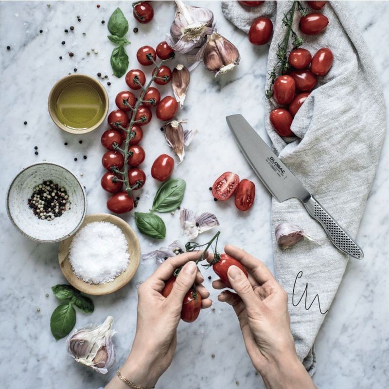 Um diese Tradition zu ehren, hat Global® eine moderne Variante des beidseitig schneidenden Kiritsuke entwickelt. Kiritsuke-Messer sind eine der wenigen universellen traditionellen japanischen Messer, die sowohl als Yanagi (zum Schneiden von Fisch und Sushi) als auch als Usuba (Gemüsemesser) verwendet werden können. Diese Messer haben eine klingenförmige Klinge, die gerader ist als bei Yanagi und für Gemüse geeignet ist, und eine längere Schneide als bei Usuba, um Fisch bequem schneiden zu können.