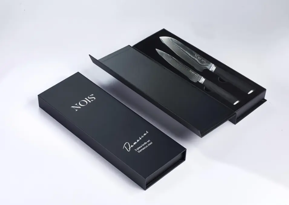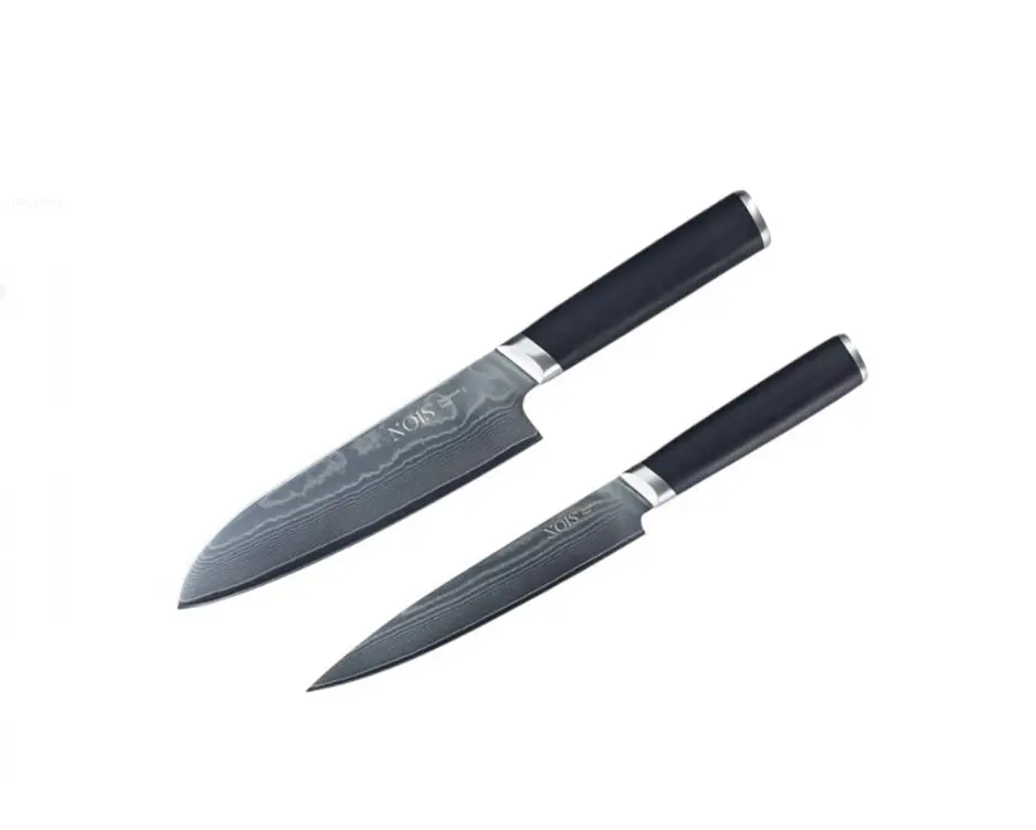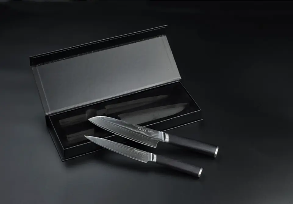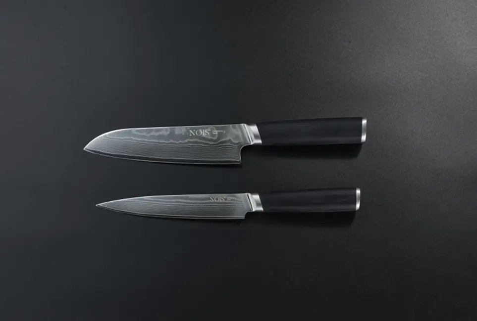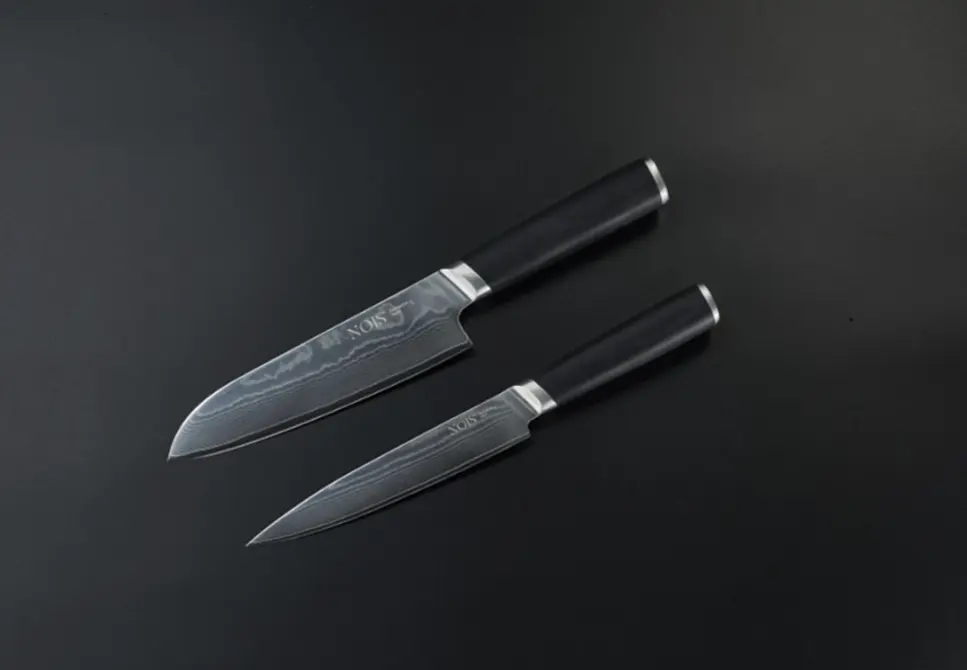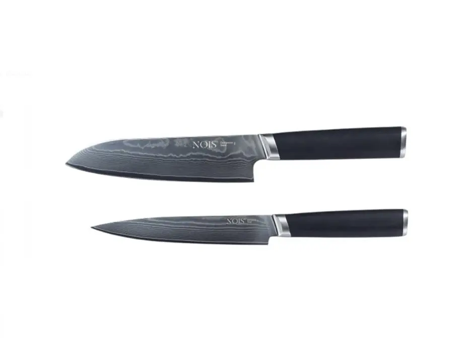 Das Set ist so konzipiert, dass es alle grundlegenden Schneidearbeiten in der Küche abdeckt. Das Santoku-Messer ist zum präzisen Hacken, Schneiden in Scheiben und Würfeln bestimmt, während das Universalmesser für alltägliche Aufgaben gedacht ist, die Manövrierfähigkeit und Präzision erfordern.