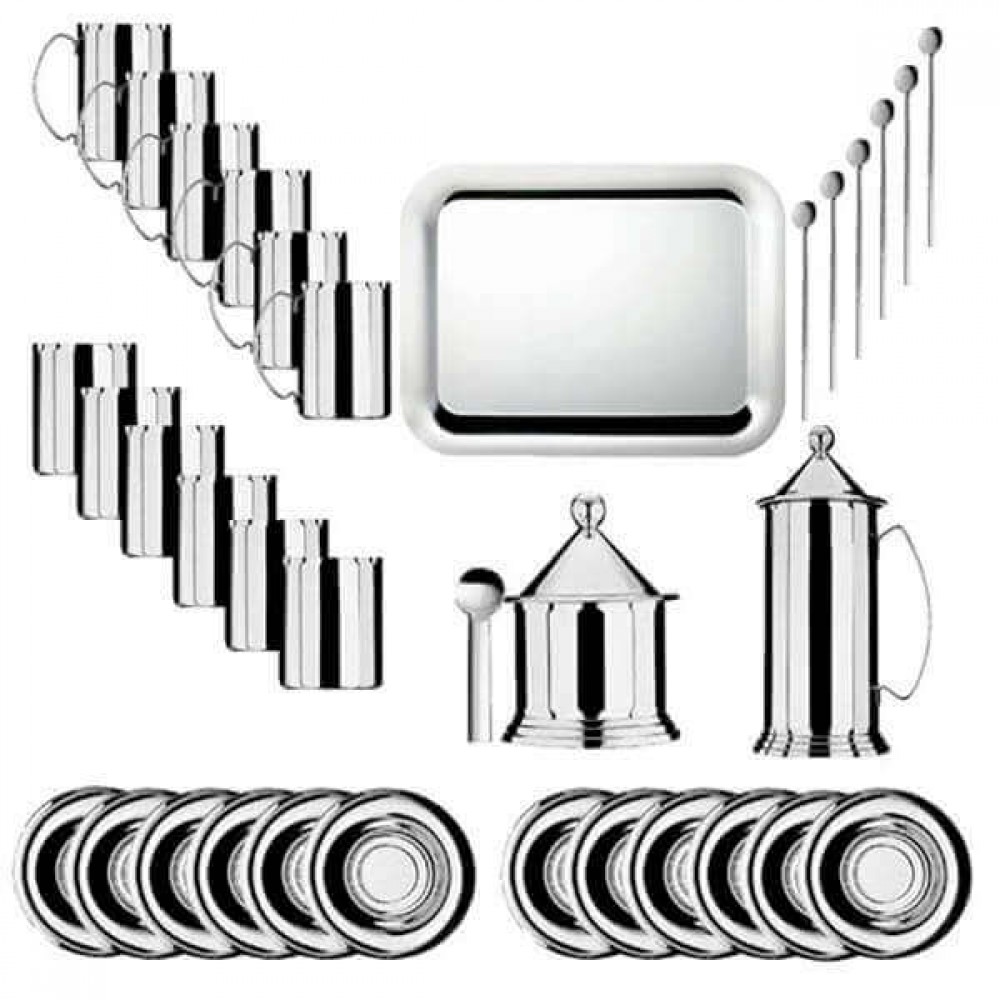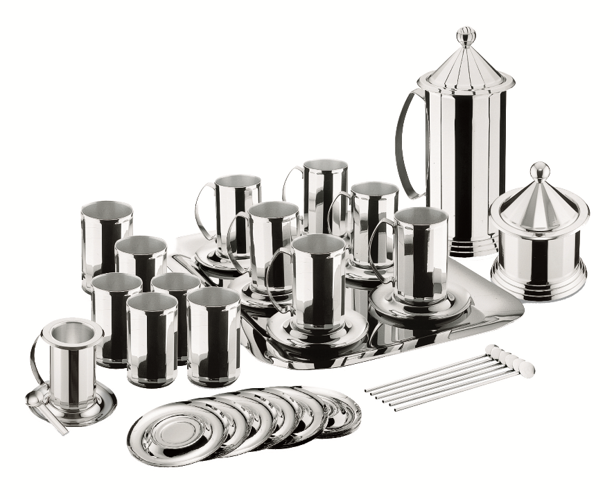 Vielseitigkeit (36 Artikel) ist die passendste Eigenschaft, um das Edelstahl-Set Taiga zu beschreiben. Es ist unmöglich, alle Getränke aufzulisten, für die es geeignet ist. Von Wasser bis Wein, von heißem Tee bis Eistee, von heißer Schokolade über erfrischende Getränke und Fruchtsäfte bis hin zu Bier – dieses Set eignet sich perfekt, um sich und Ihrer Familie Lieblingsgetränke zu gönnen. Die Taiga-Becher sind so konzipiert, dass sie den spezifischen Geschmack jedes Getränks bewahren. Die Teller eignen sich perfekt für die elegante Präsentation von Getränken. Sie sind speziell so gestaltet, dass sie harmonisch zu den Bechern passen, und was noch wichtiger ist, sie lassen sich leicht von ihnen trennen (kleben nicht fest). Die Gläser können auf einem schönen, luxuriösen Tablett platziert werden, und Gästen werden Getränke serviert, die dem Servierprozess eine noch festlichere Atmosphäre verleihen. Hergestellt aus hochwertigem Edelstahl, haben die Innenwände der Taiga-Becher eine polierte Oberfläche und verleihen dem Getränk keinen metallischen Geschmack. Sie nehmen keinen Geruch des vorherigen Getränks auf, und die doppelten Wände halten sowohl heiße als auch kalte Getränke gut auf Temperatur.