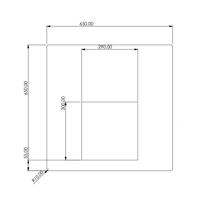 | Ecken | Abgerundet, R10 (10{mm} Radius) |
