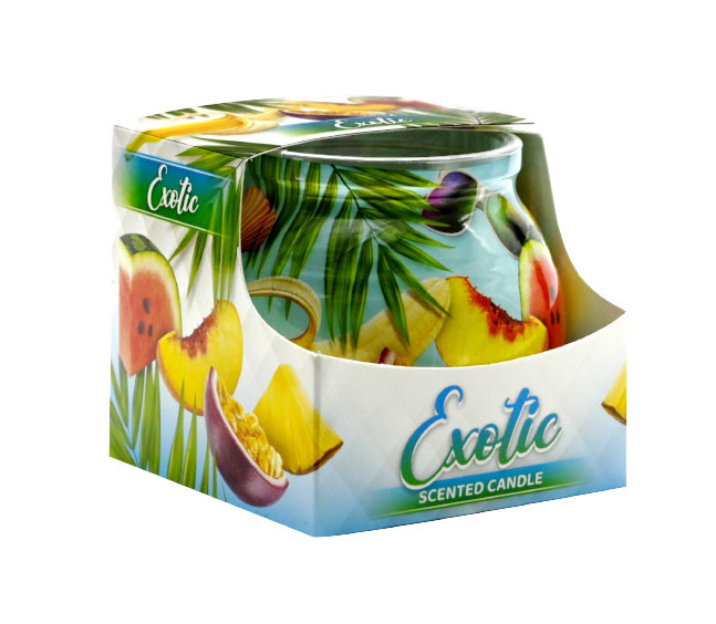 Schließen Sie die Augen und lassen Sie sich vom Duft “Exotic” an einen sonnigen Tropenstrand entführen. Diese erfrischende und stimmungsaufhellende Duftkerze wurde entwickelt, um eine fröhliche, energiegeladene und entspannende Atmosphäre zu schaffen. Ihr Duft, der an süße und saftige tropische Früchte erinnert, wird Ihnen helfen, die Alltagssorgen zu vergessen und einen Hauch von Sommer in Ihr Zuhause zu bringen.