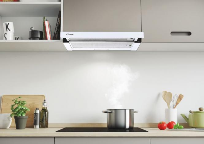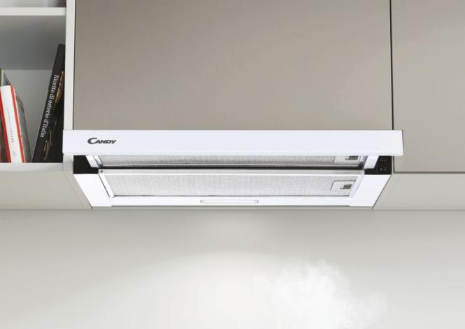 Suchen Sie eine Dunstabzugshaube, die Ihr Küchendesign nicht beeinträchtigt? Die Teleskop-Dunstabzugshaube Candy CBT625/2W/1 ist die ideale Lösung. Sie wird direkt in den Schrank über dem Kochfeld eingebaut und bleibt fast unsichtbar, bis Sie sie benötigen. Ziehen Sie einfach die Frontblende heraus, und die Dunstabzugshaube beginnt automatisch zu arbeiten und reinigt die Luft effektiv.