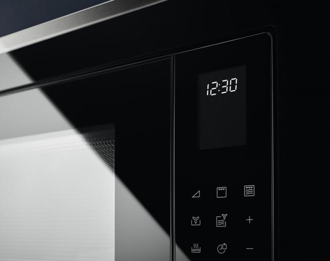 Diese Mikrowelle ist so konzipiert, dass sie perfekt zu Ihren anderen Electrolux-Geräten passt. Die elegante Oberfläche aus schwarzem Glas und das glatte Touch-Bedienfeld bilden eine einheitliche, leicht zu reinigende Oberfläche ohne hervorstehende Knöpfe. Die Tür lässt sich mit nur einem Knopfdruck öffnen.