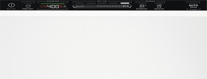 - „QuickSelect“: Steuern Sie den Geschirrspüler mit einem intuitiven Schieberegler. Wählen Sie einfach die gewünschte Spüldauer, und das Gerät schlägt den sparsamsten Zyklus vor. Fügen Sie mit einem Fingertipp zusätzliche Funktionen wie “XtraPower” oder “GlassCare” hinzu.